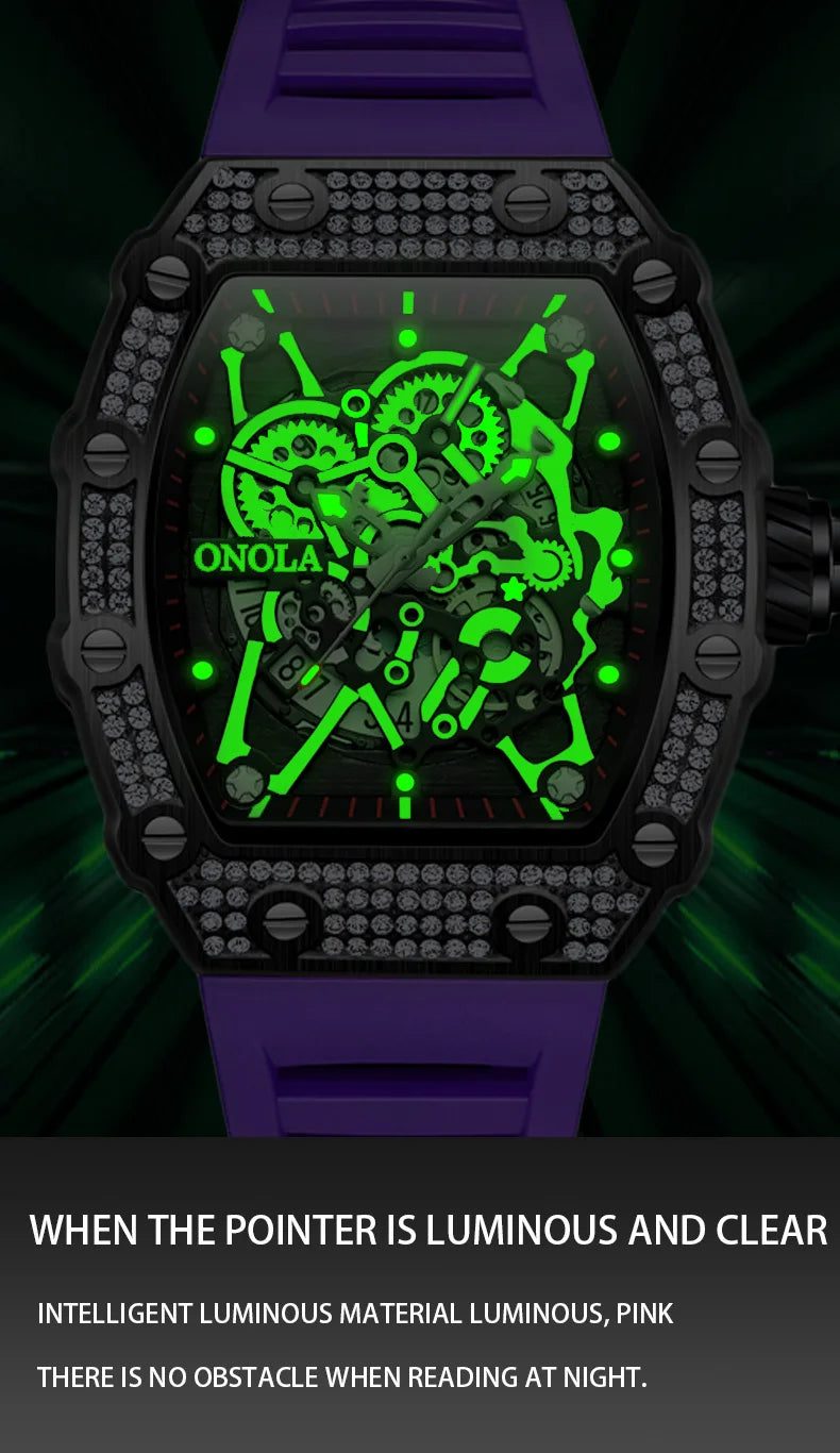 2022 New Men's Watch ONOLA Fashion Luxury Diamond Inlaid Design Quartz Waterproof Tape Watches Men Relogio Masculino Clock