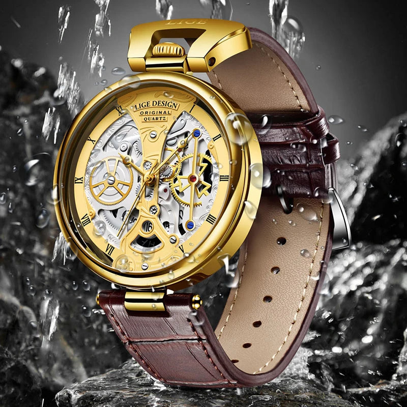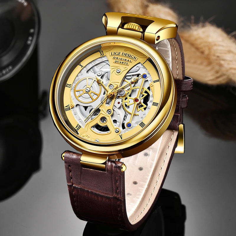 2023 LIGE Men Watches Top Brand Luxury Brown Leather Chronograph Sport Watch For Men Fashion Date Waterproof Clock Reloj Hombre