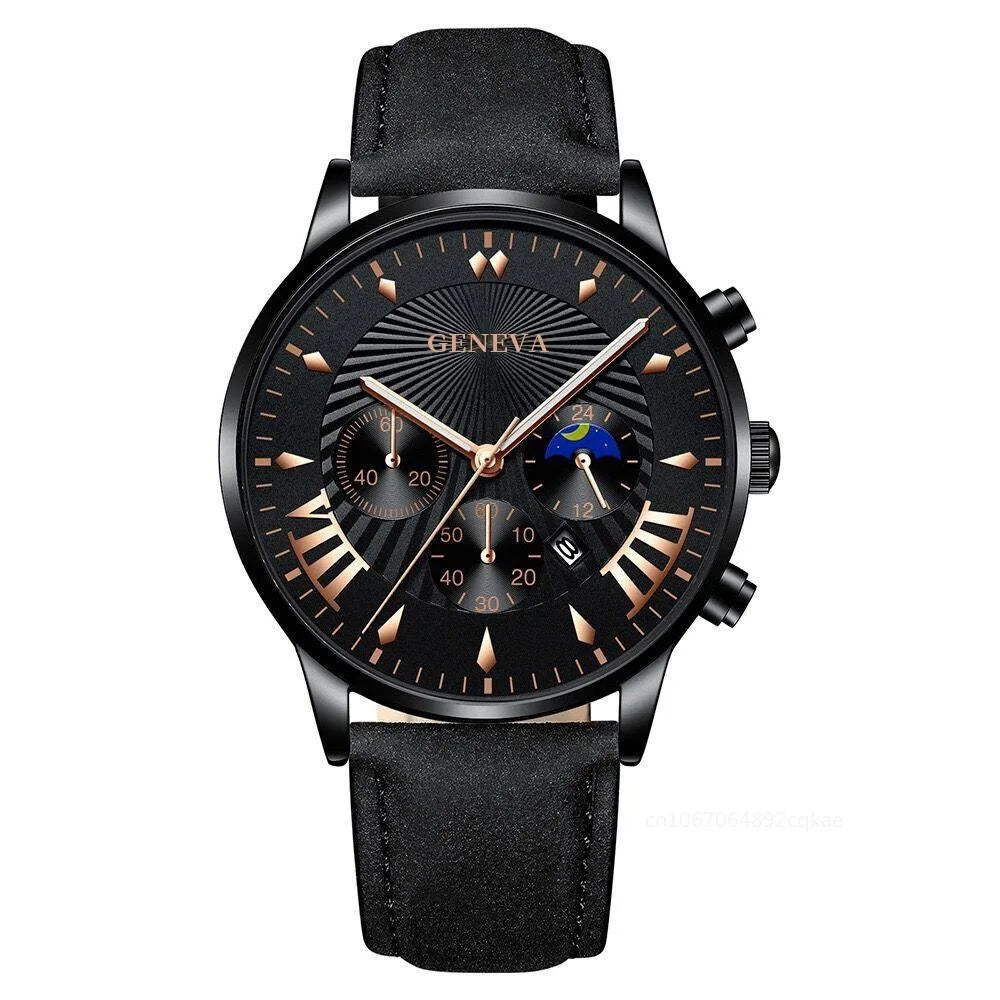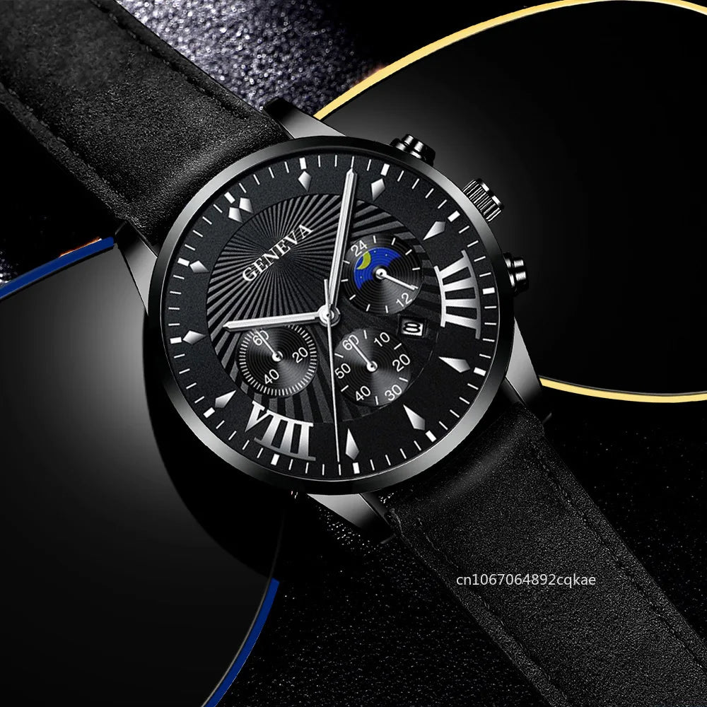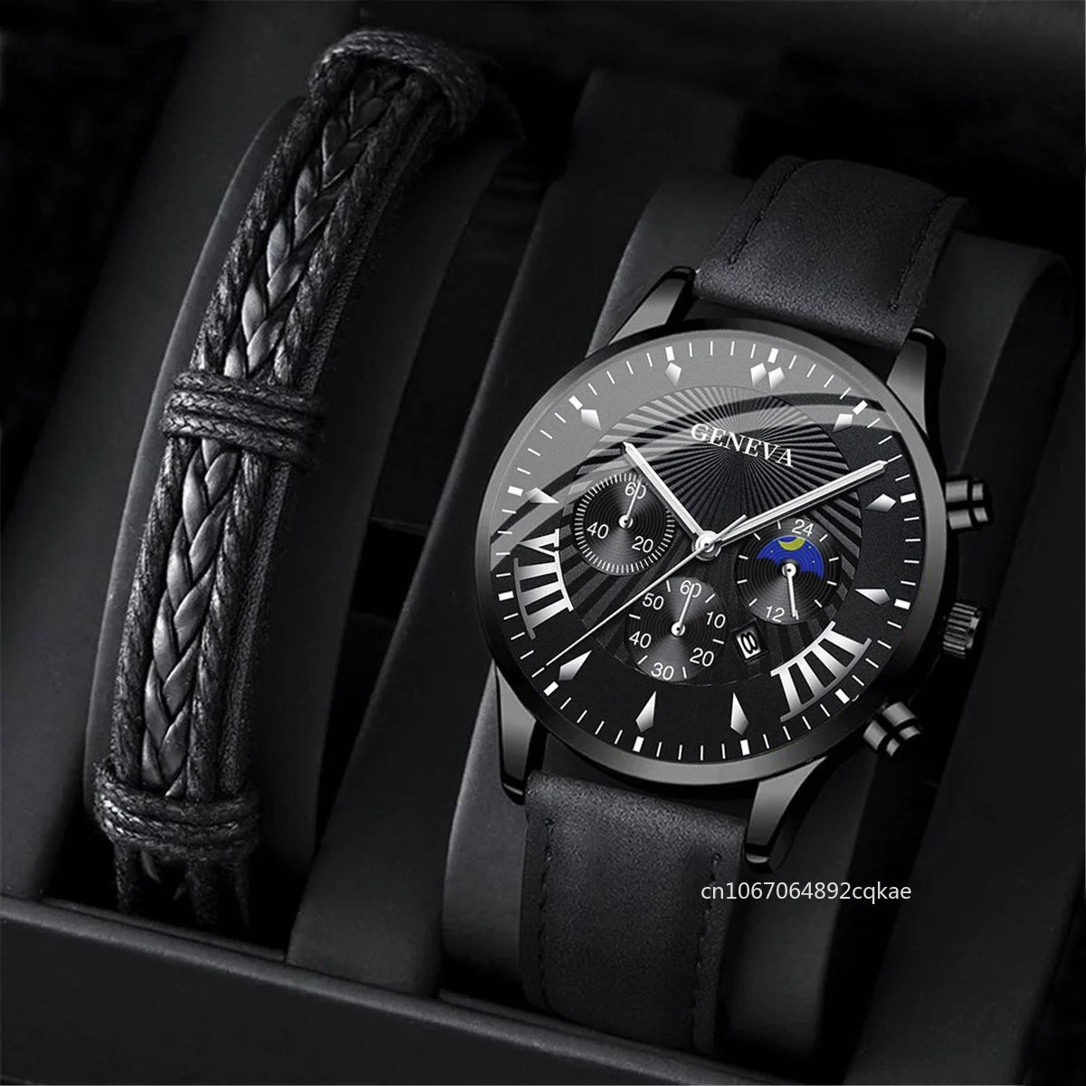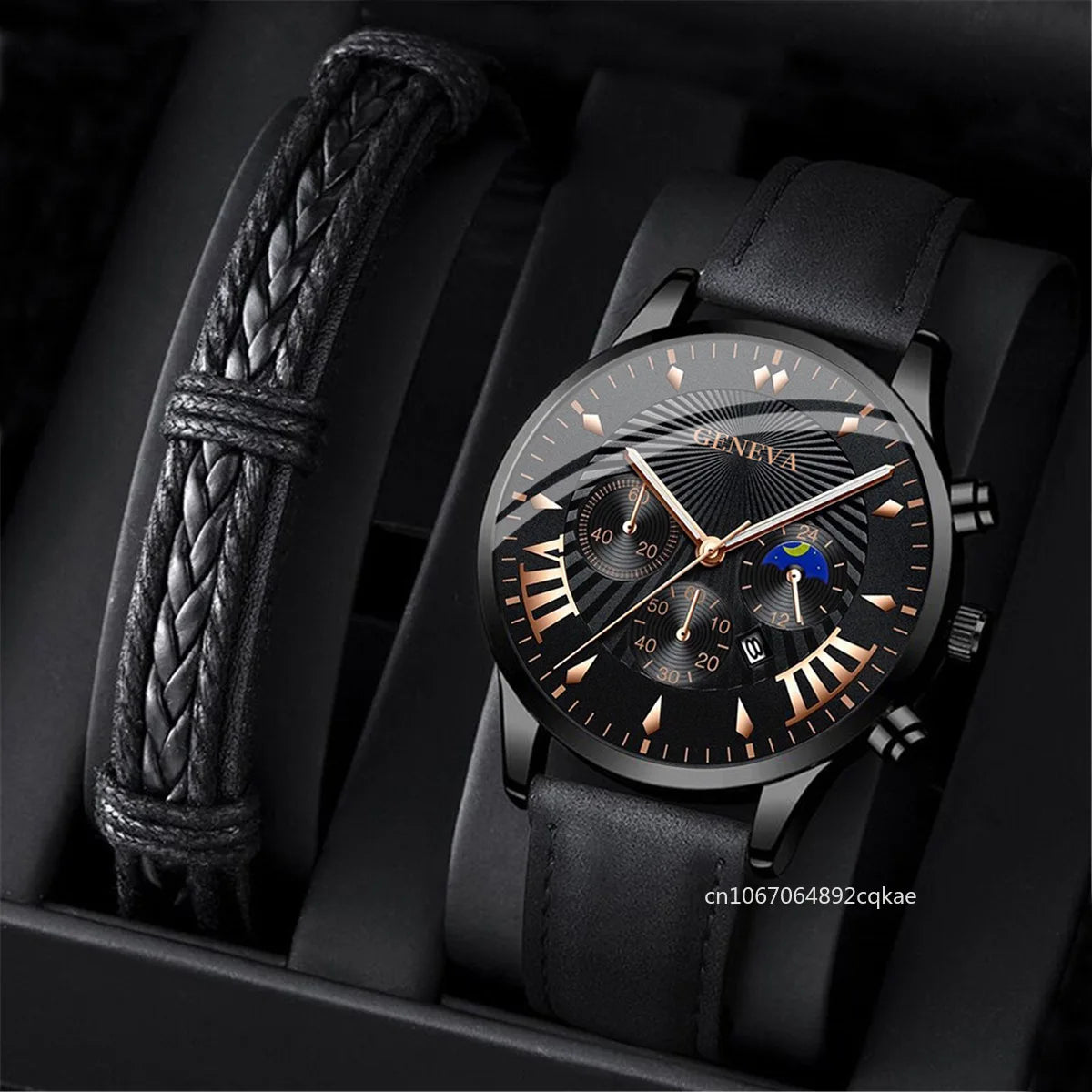 2PCS Set Fashion Mens Sports Watches Man Business Leather Bracelet Quartz Watch Luxury Men Casual Calendar Clock Reloj Hombre