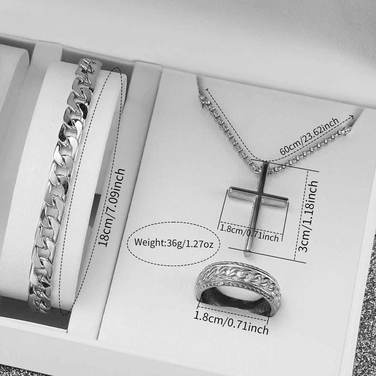4pcs/set Men's Watches Fashion Arabic Dial Quartz Watch Male's Silver Band Wristwatches Jewelry Set (Without Box)