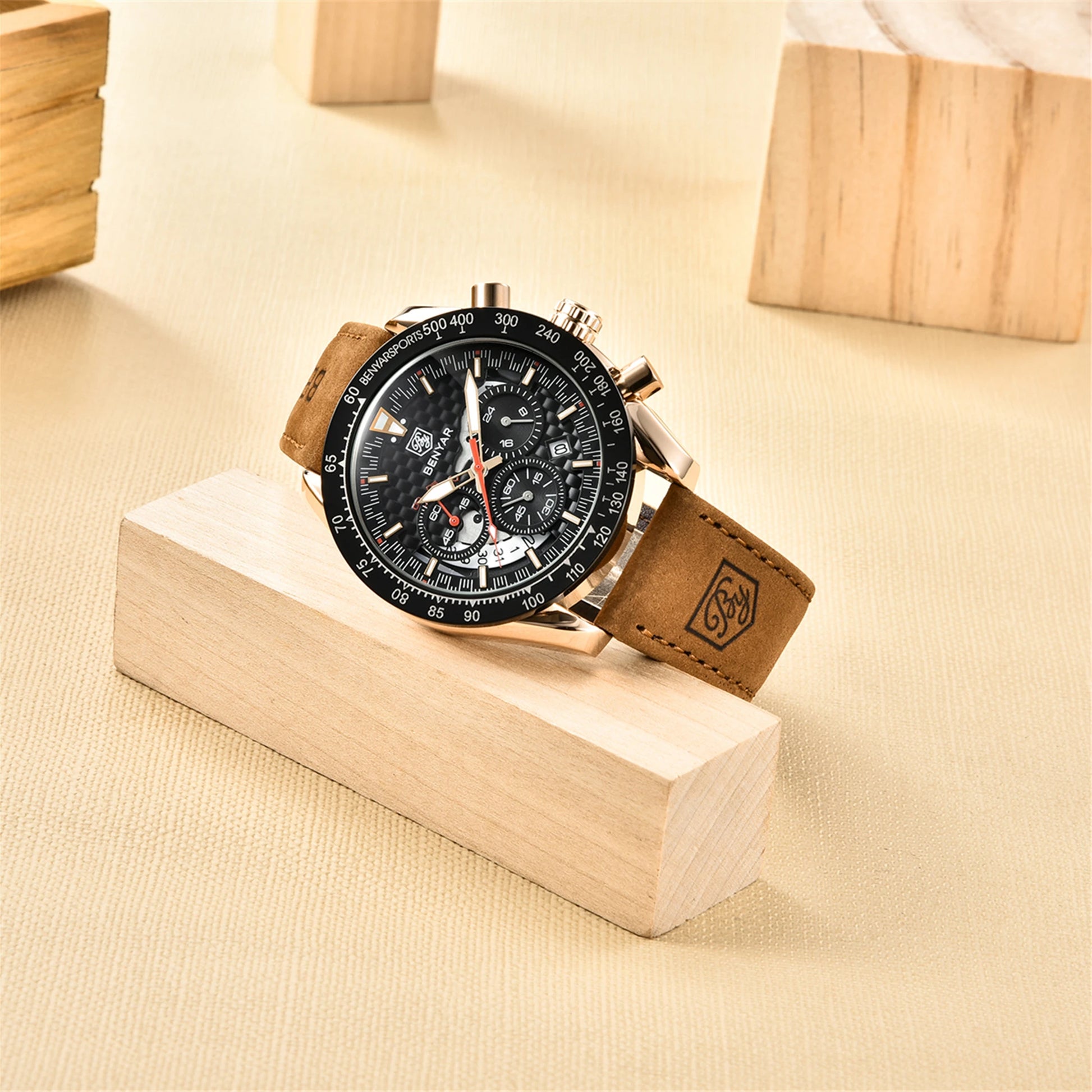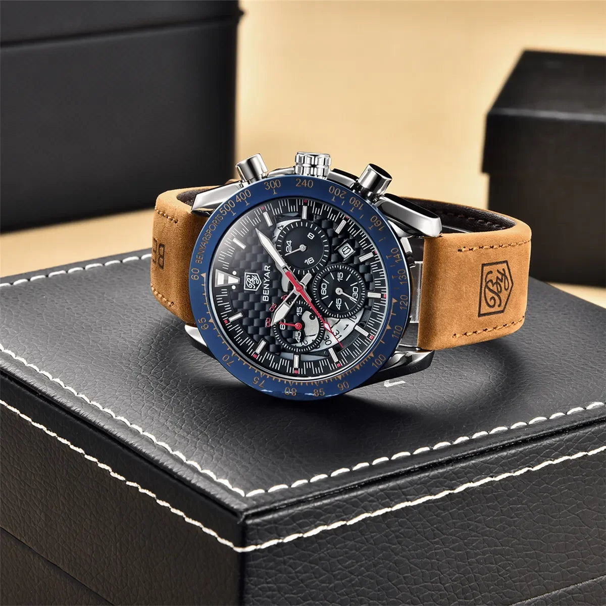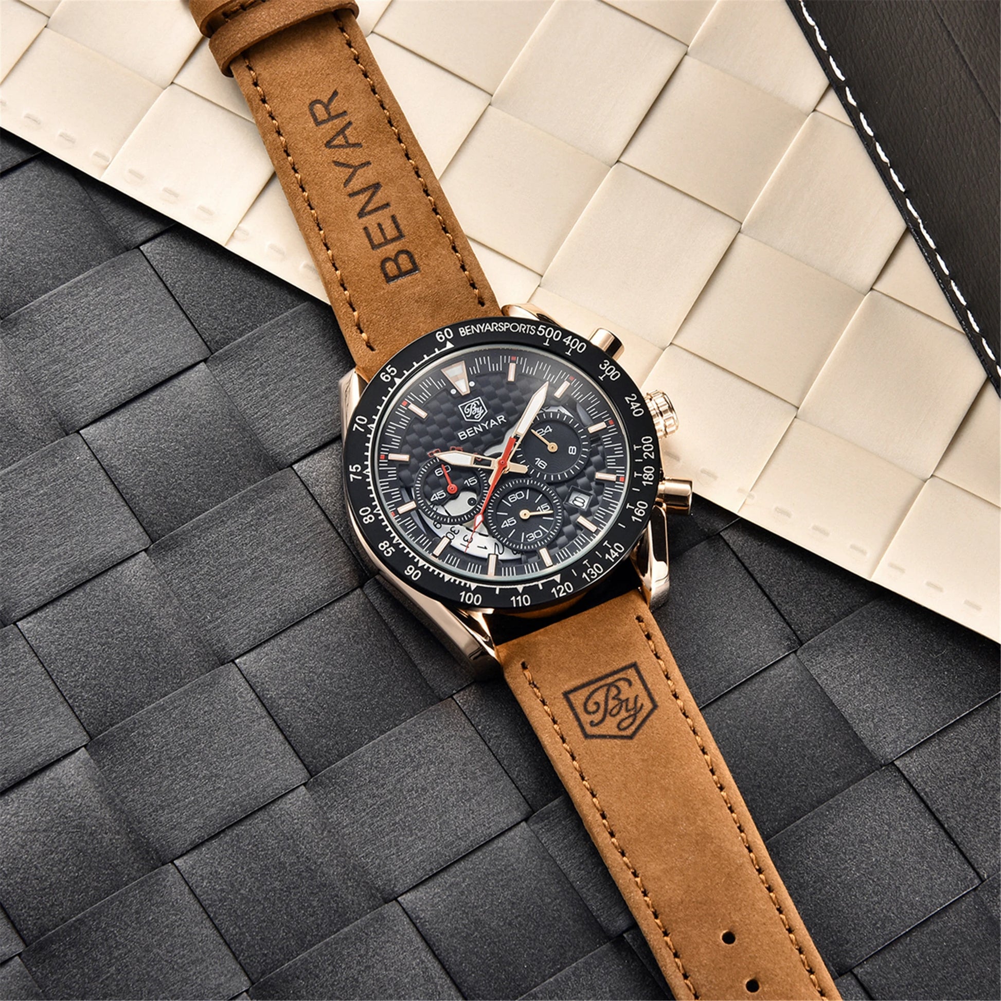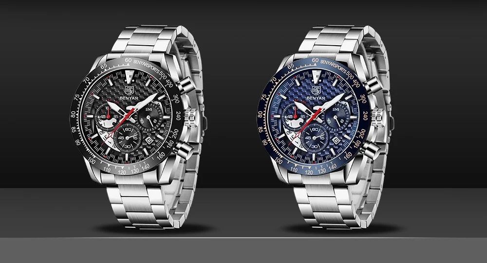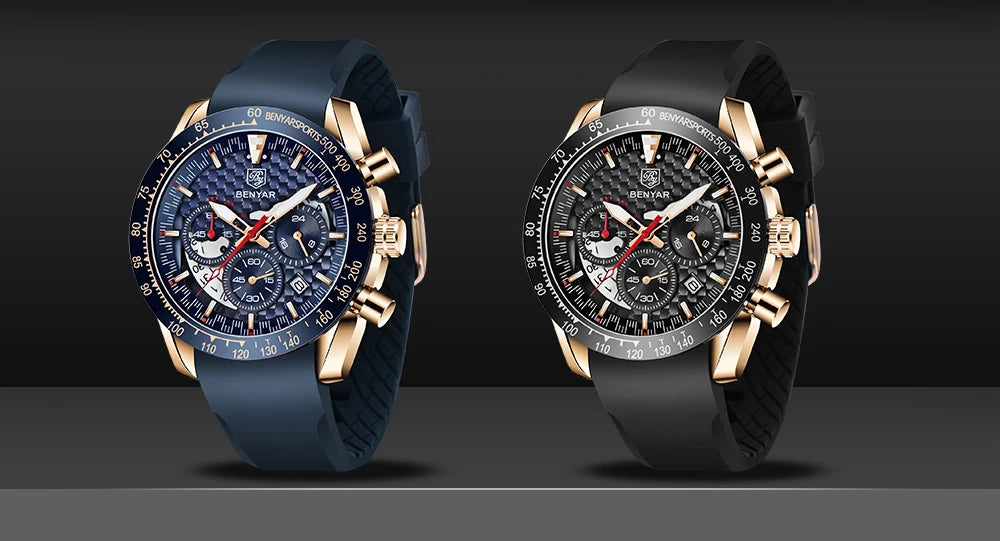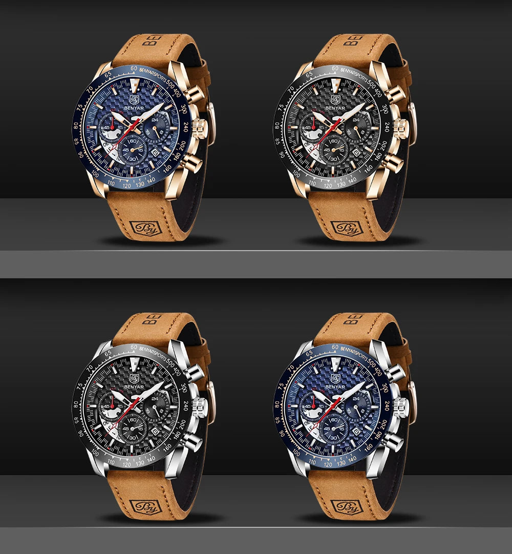 BENYAR Top Brand New Men Watches Leather Strap Luxury Waterproof Sport Quartz Chronograph Military Watch Men Clock Reloj Hombre