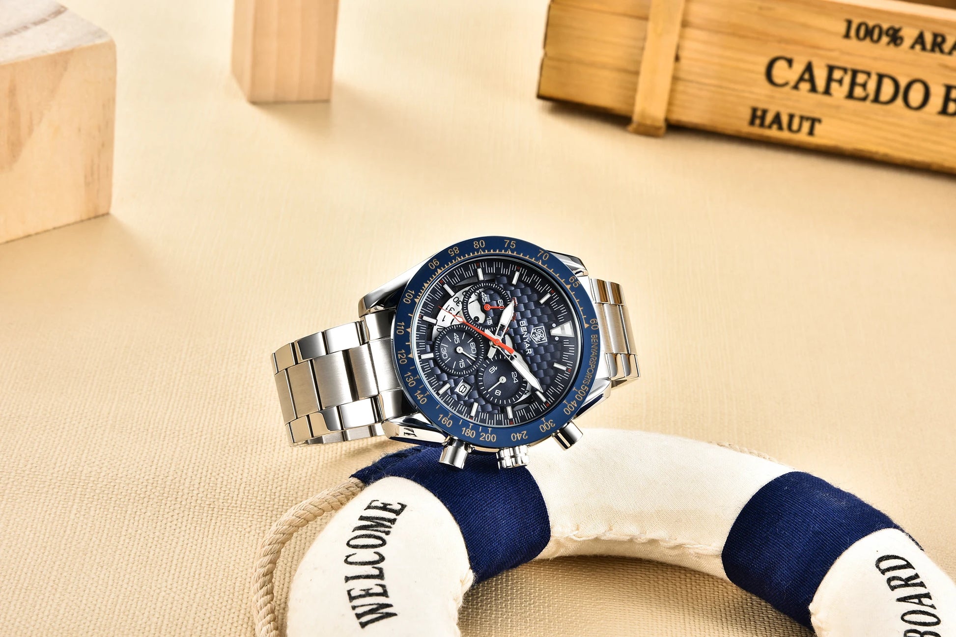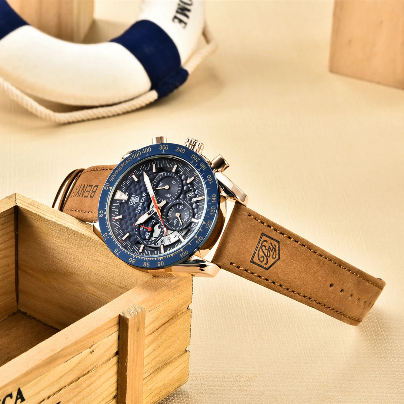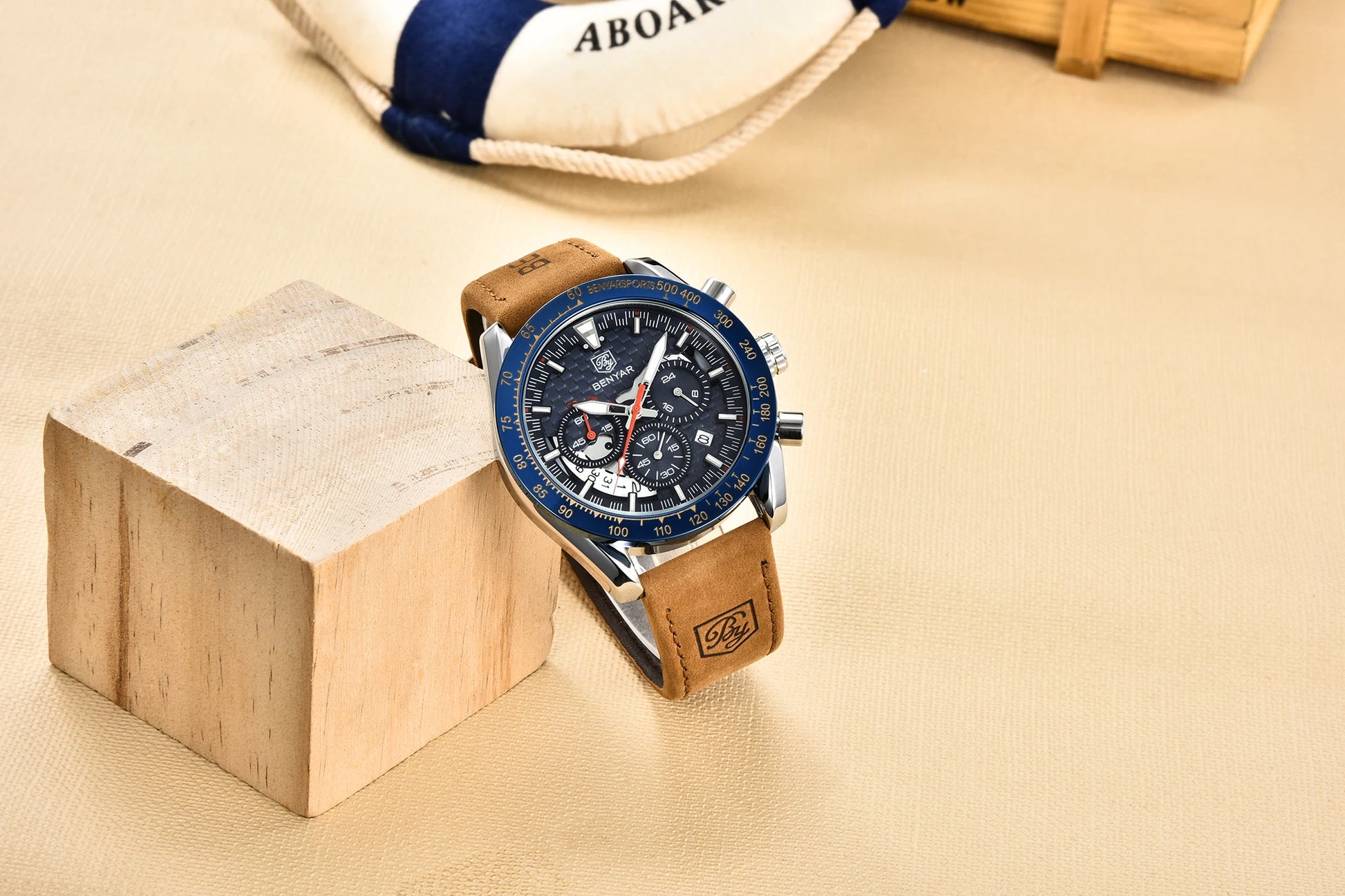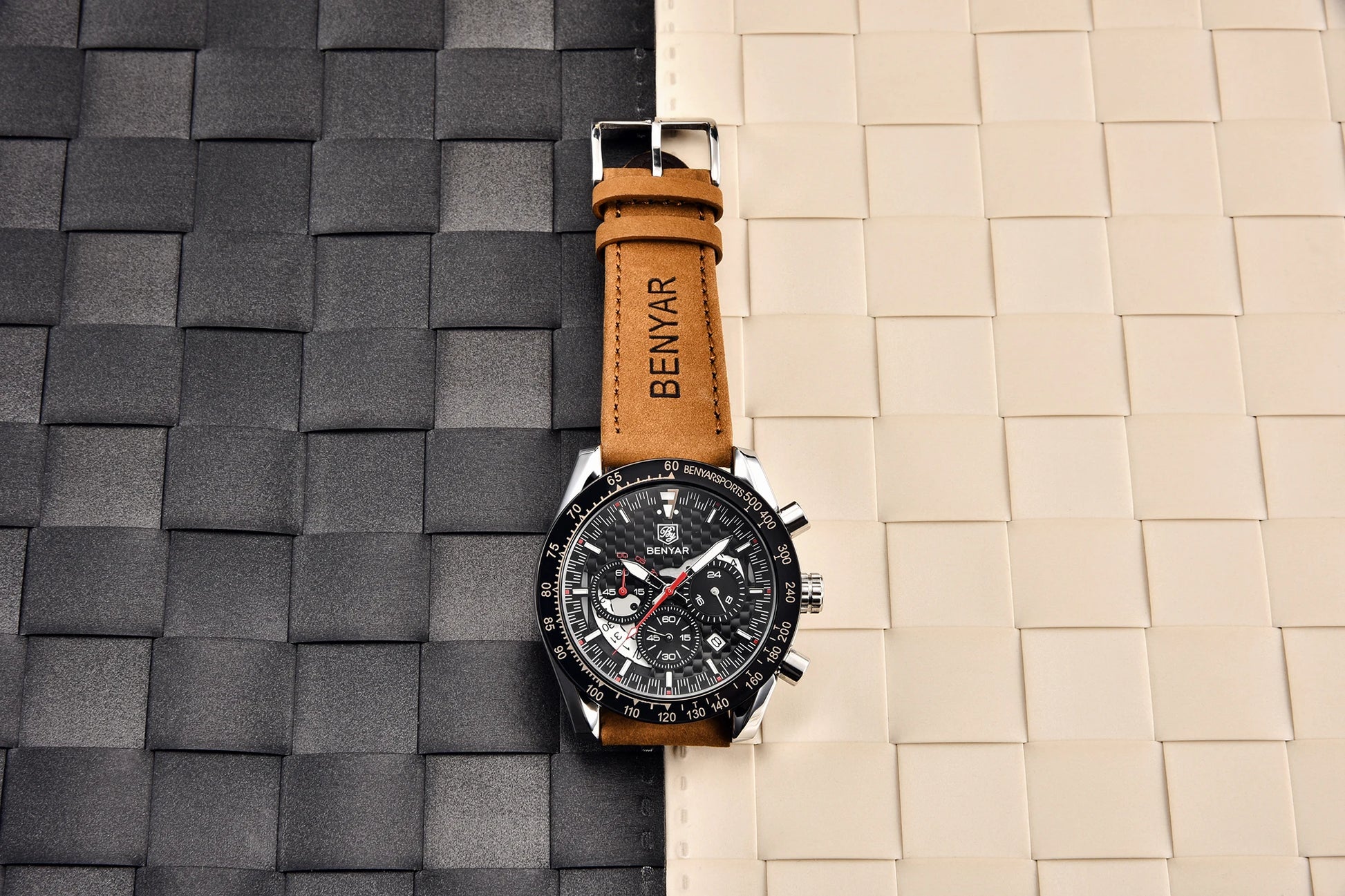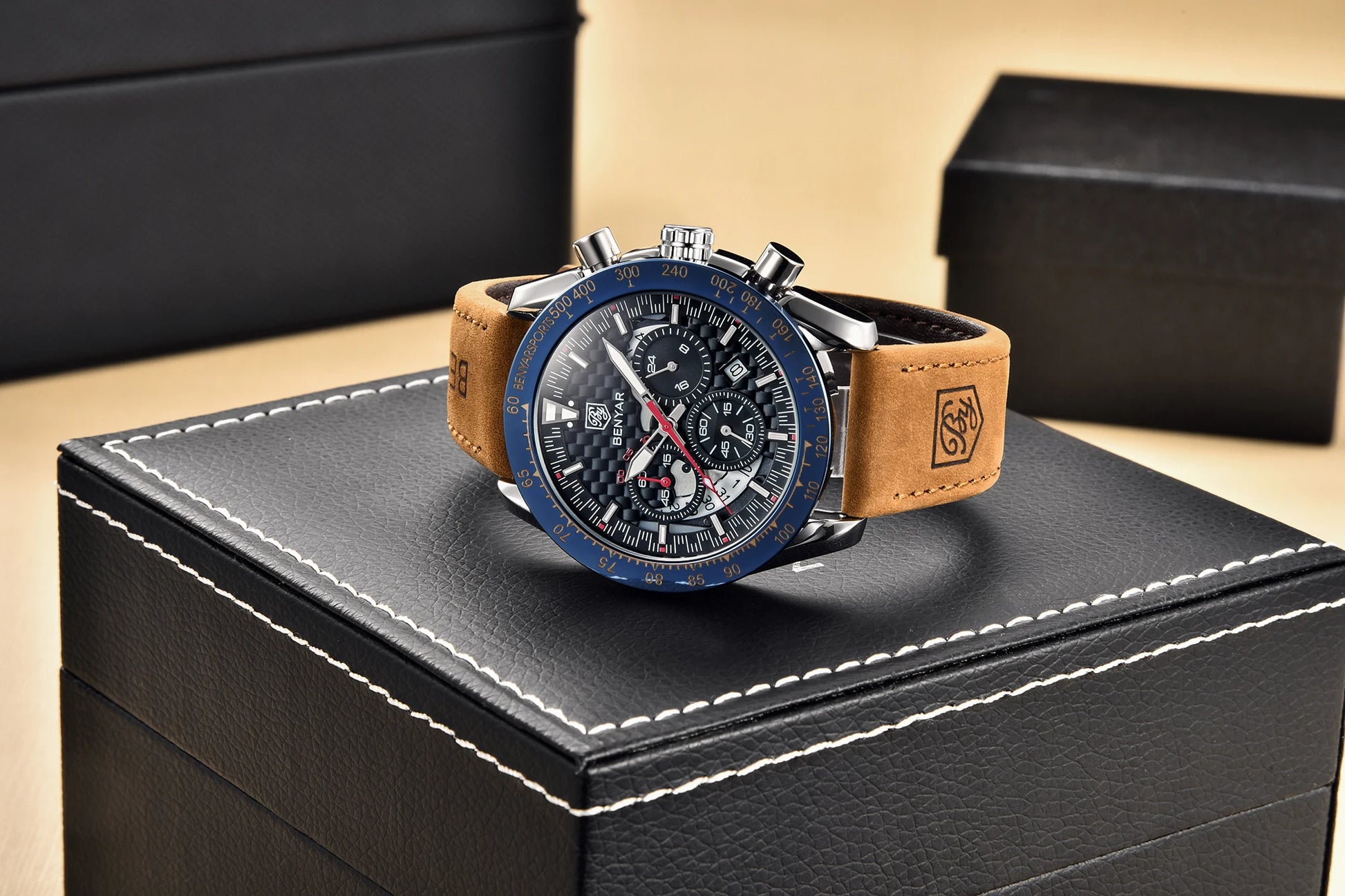 BENYAR Top Brand New Men Watches Leather Strap Luxury Waterproof Sport Quartz Chronograph Military Watch Men Clock Reloj Hombre