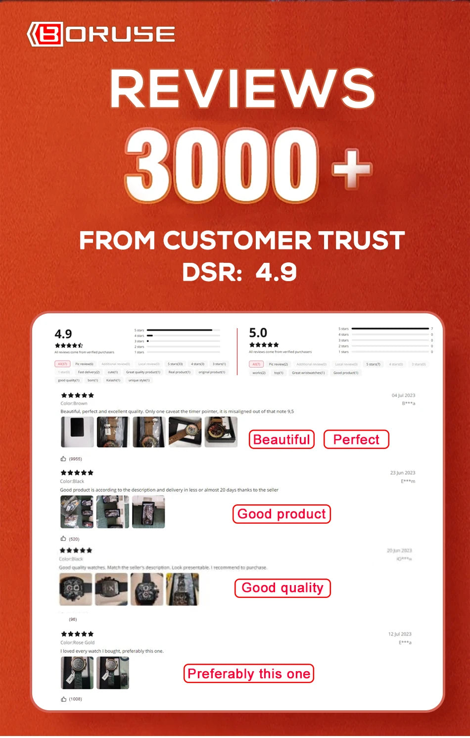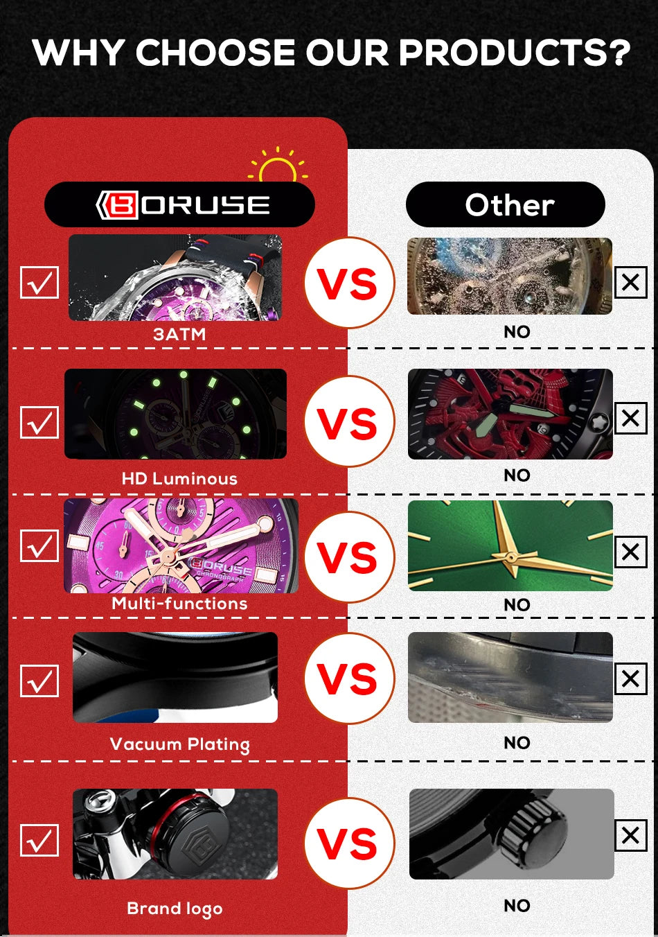 BORUSE New Fashion Mens Watches Top Brand Luxury Military Quartz Watch Man Premium Leather Waterproof Sport Chronograph Watch