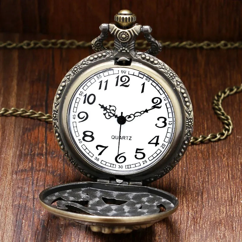 Bronze Tiger Hollow Quartz Pocket Watch Clock Necklace Pendant Womens Men GIfts Reloj De Bolsillo Dropshipping