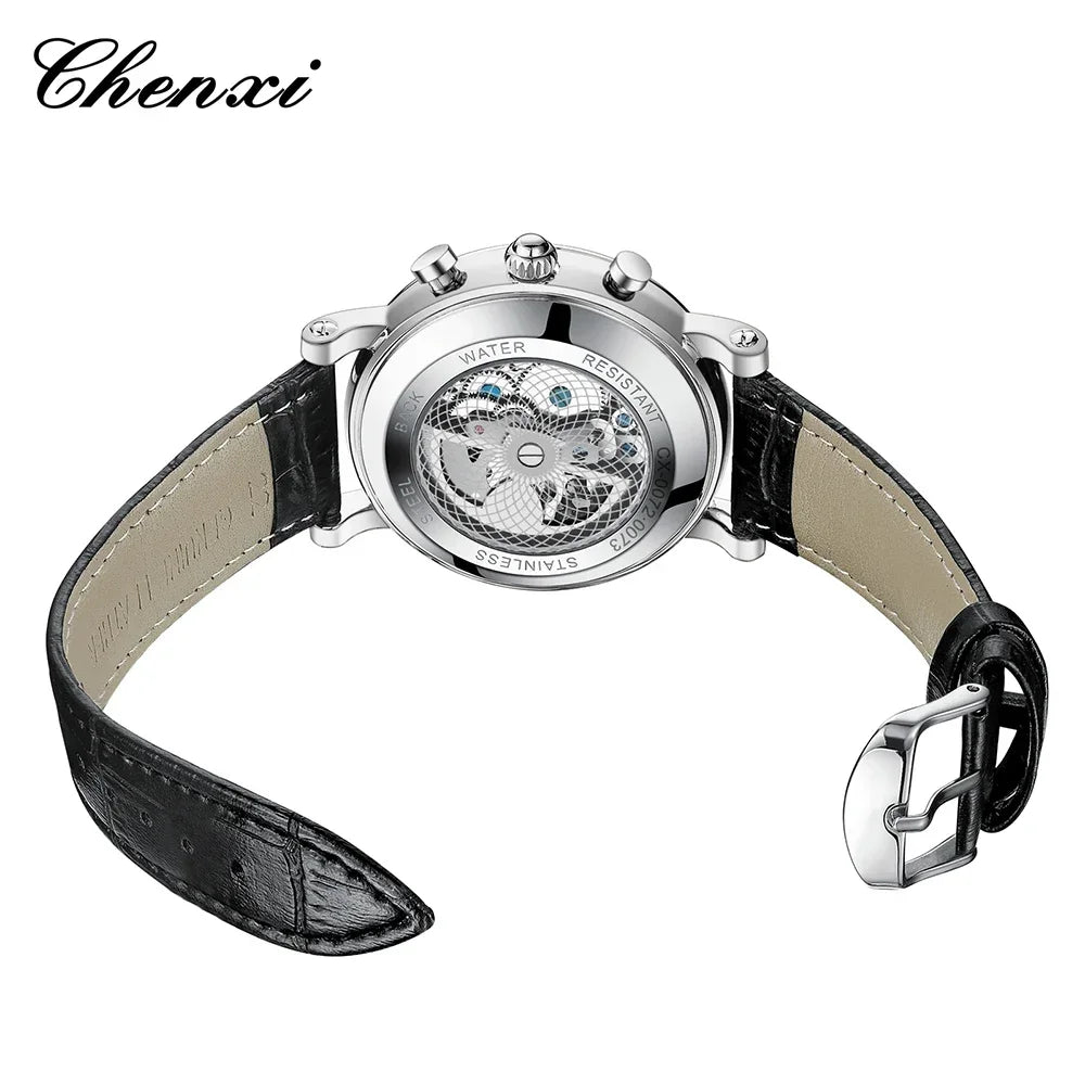CHENXI 2024 Watches For Men Leather Strap Skeleton Quartz Sweep Second Movement Mens Watch Waterproof Chronograph Wristwatches