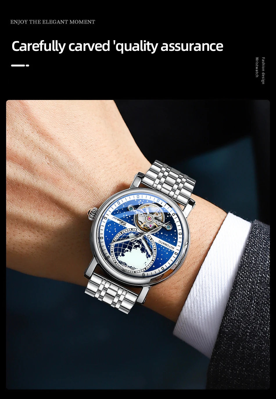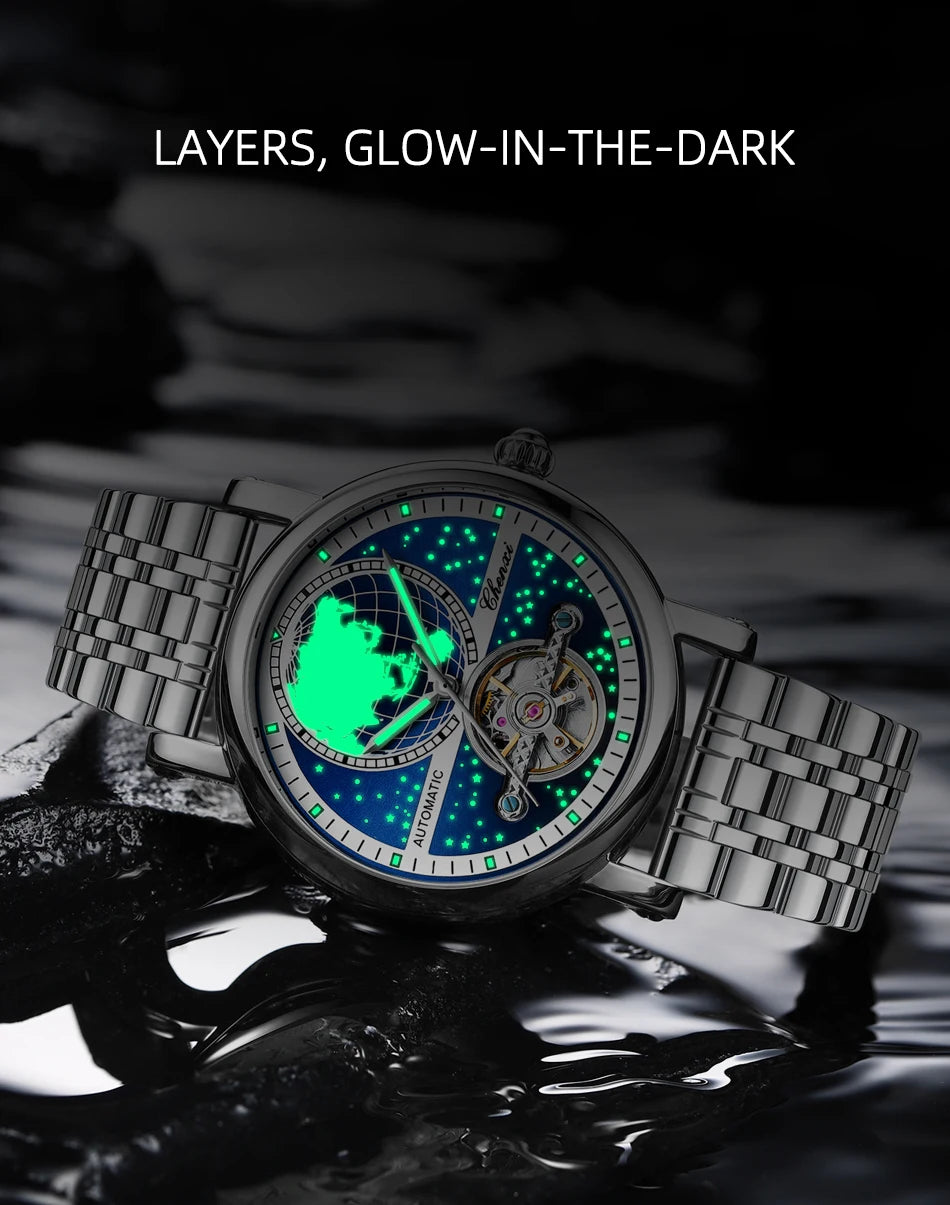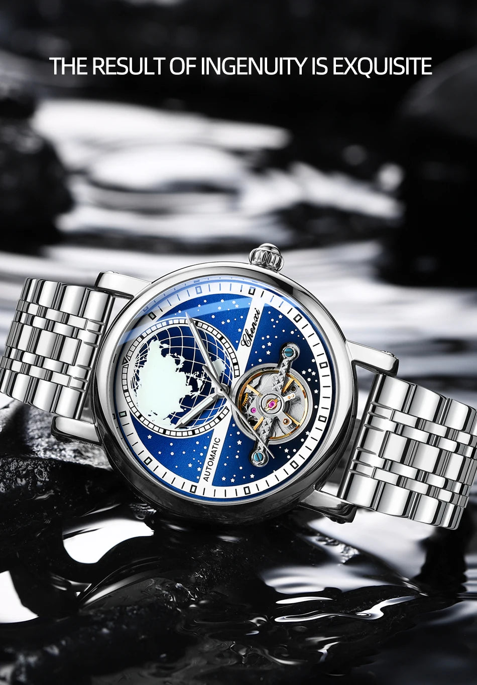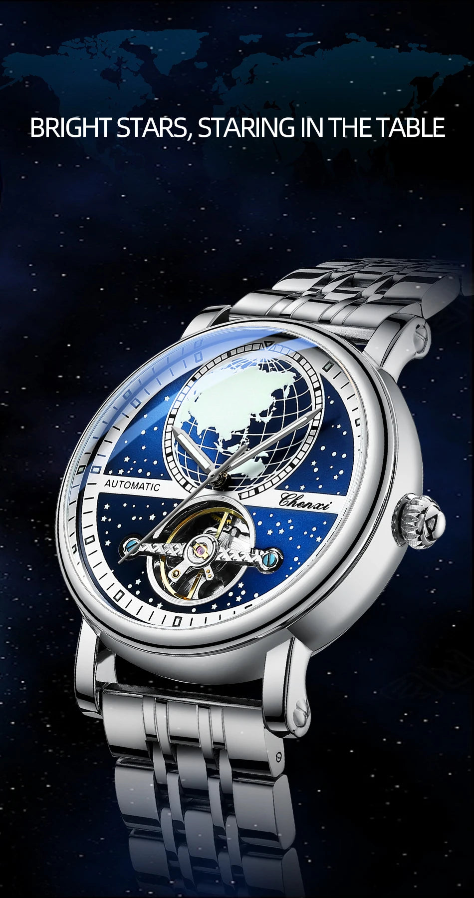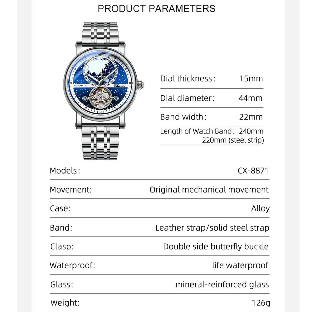 CHENXI Tourbillon Mens Watch Automatic Mechanical 8871 Classic Map Dial Waterproof Luminous Leather Watches for Men Reloj Hombre