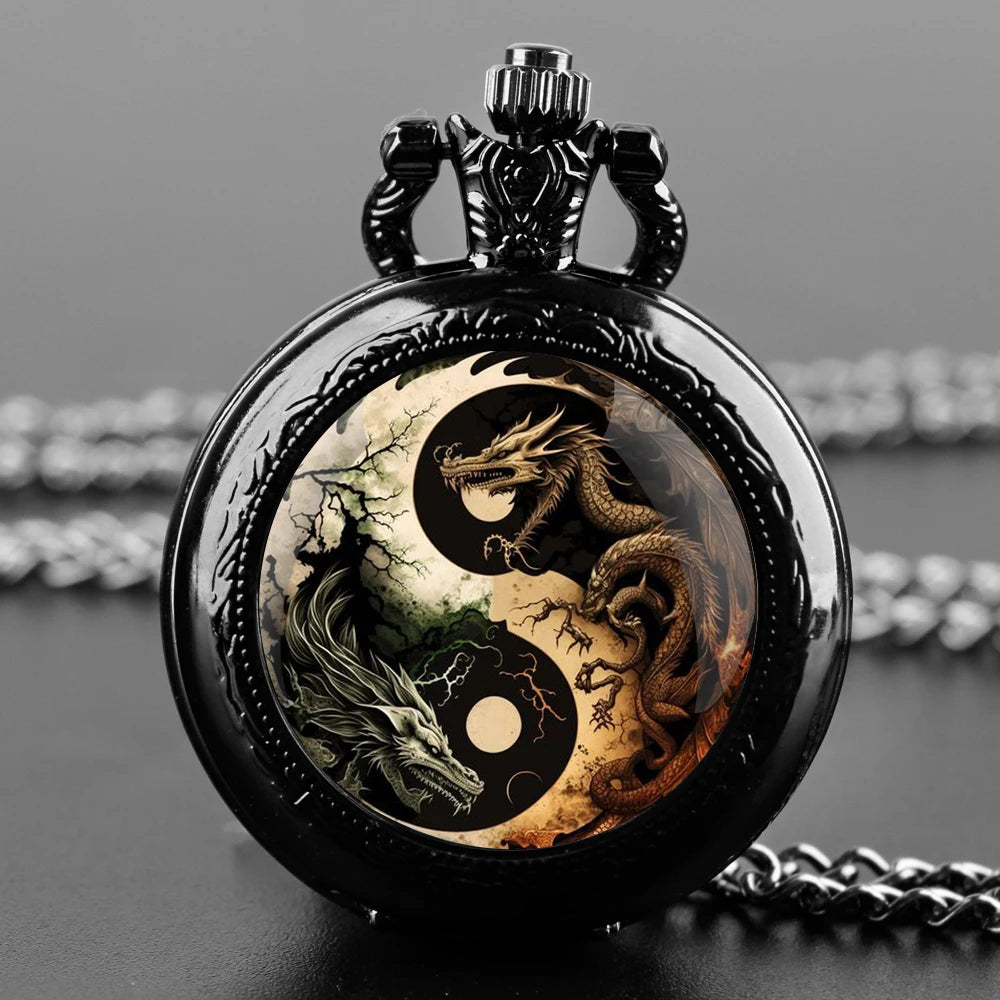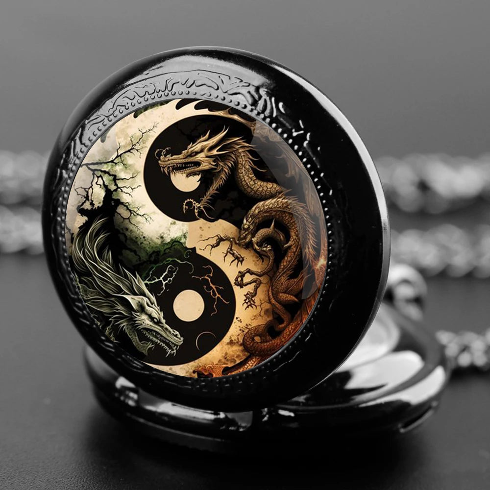 Creative Yin-Yang Dragon Design Pendant Quartz Pocket Watch Souvenir Chain Pocket Watch Arabic Numerals With Personality Gift