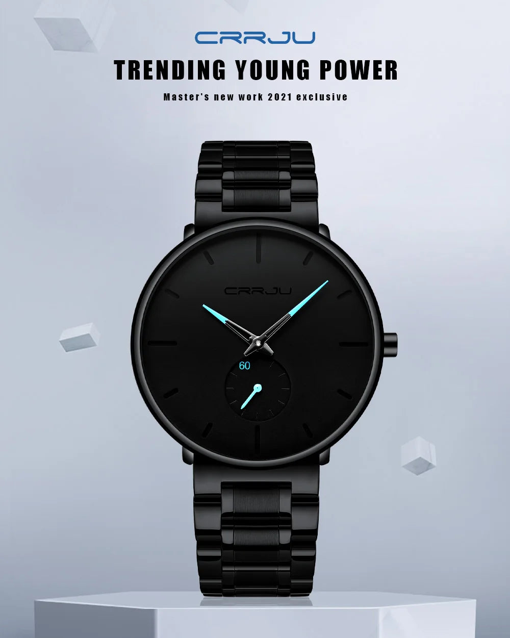 CRRJU Mens Watches Stainless Steel Men's Wrist Watch Casual Luxury Waterproof Sport Watch for Men Quartz Watch Relogio Masculino