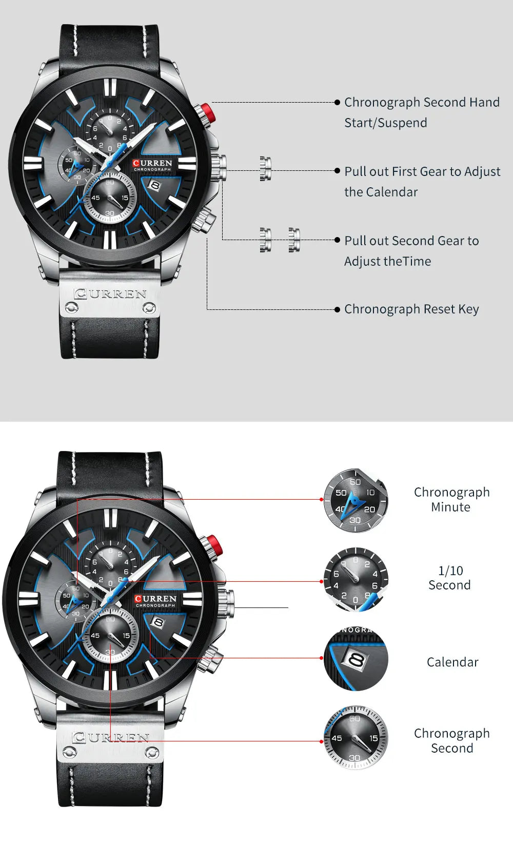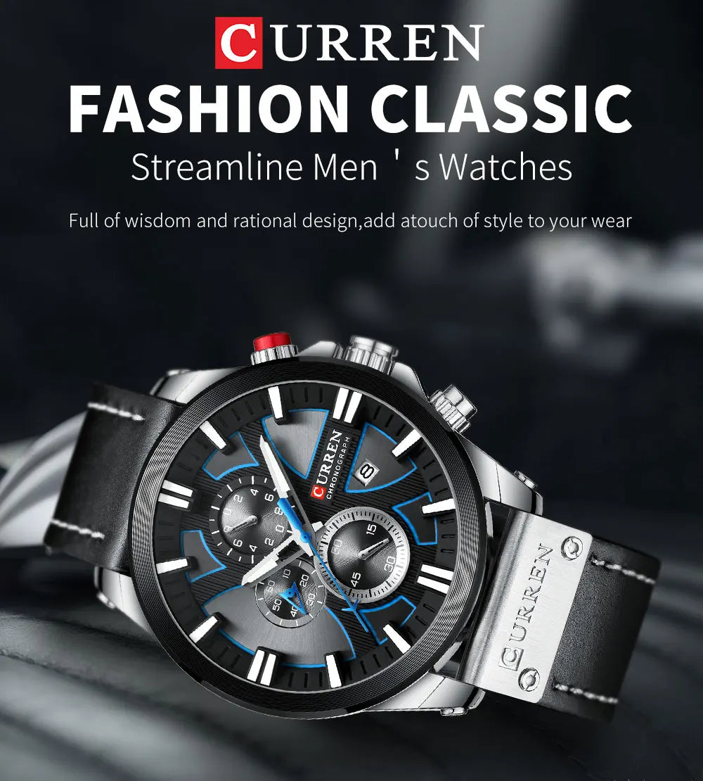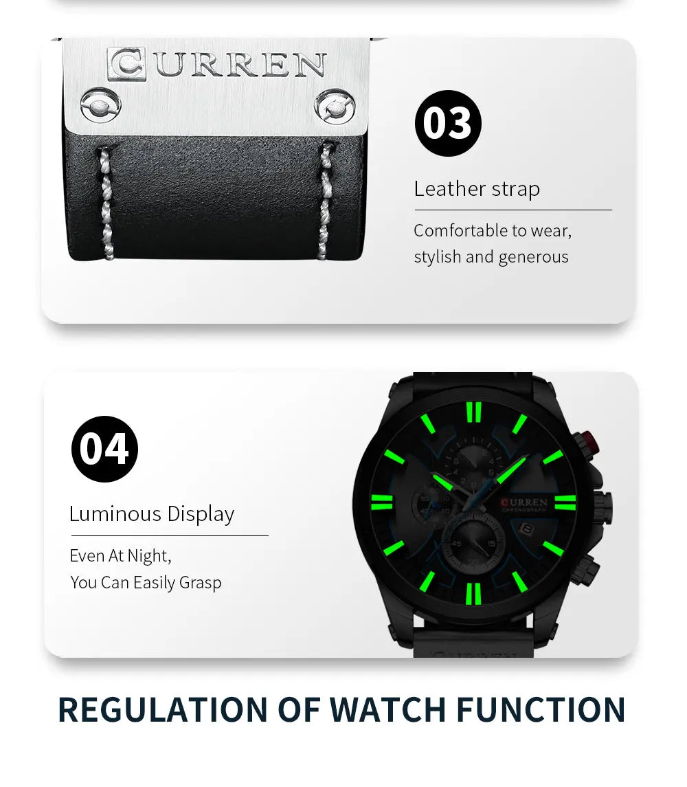 CURREN Watch Chronograph Sport Mens Watches Quartz Clock Leather Male Wristwatch Relogio Masculino Fashion Gift for Men