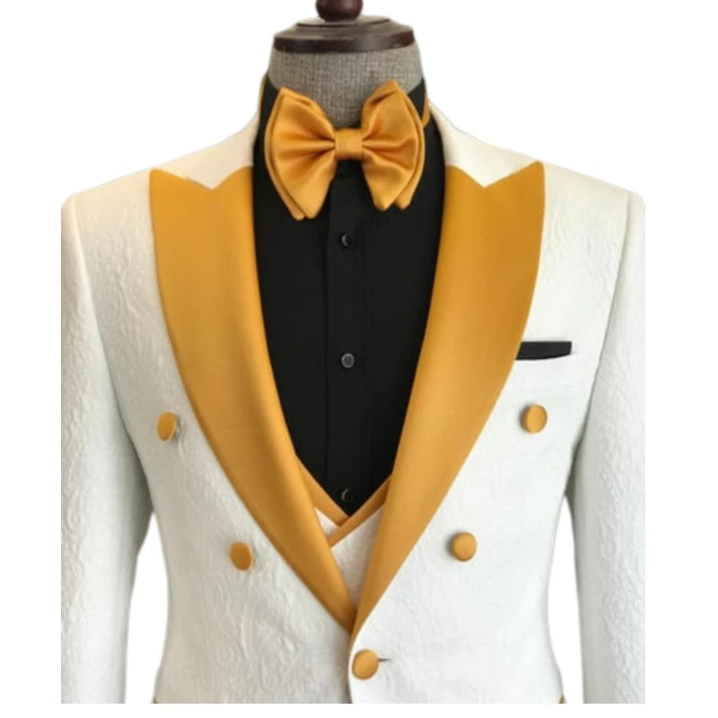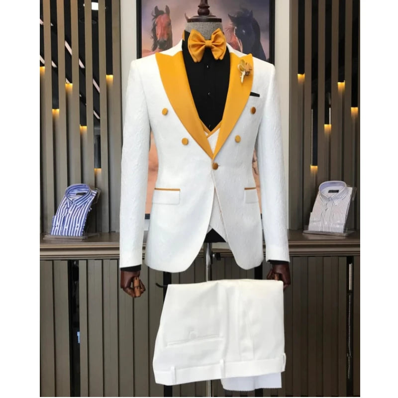 Floral Wedding Suits for Men 2024 Double Breasted Jacket with Vest Pants 3 Pieces Peak Lapel Groom Tuxedo Male Fashion Suit
