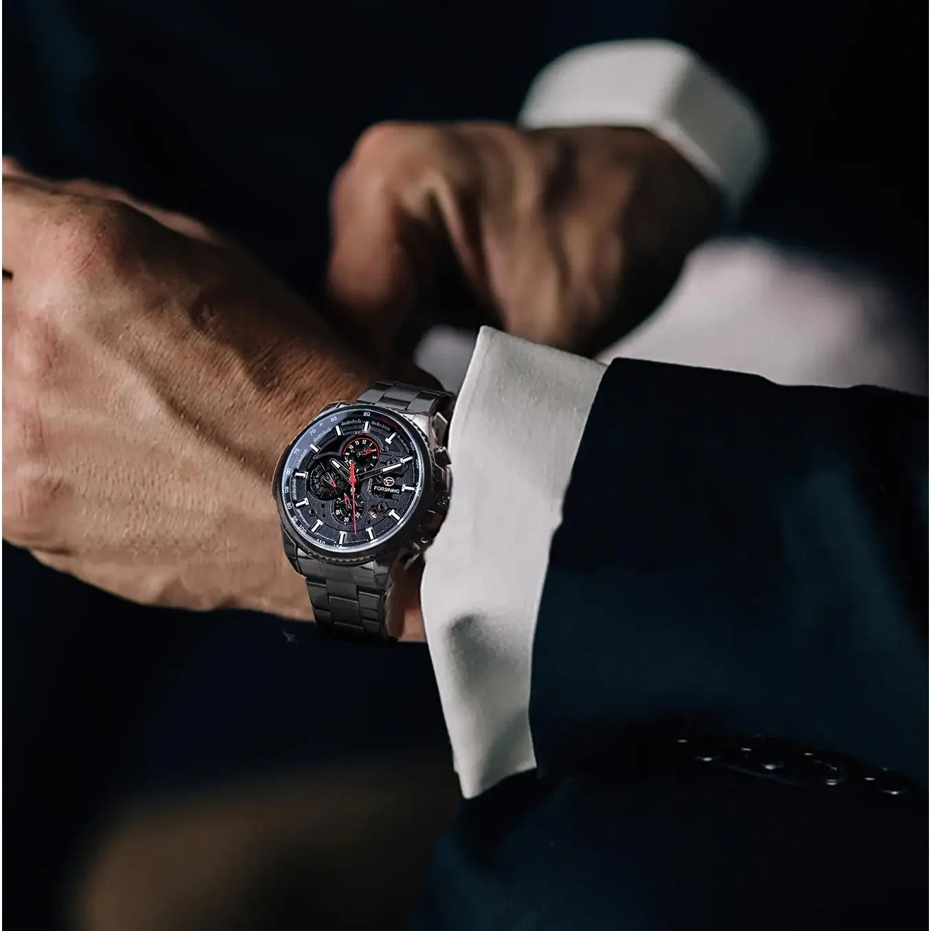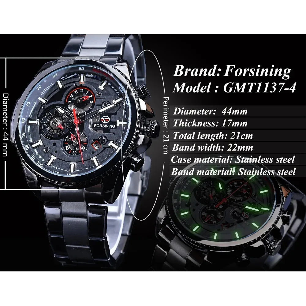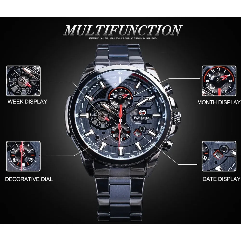 Forsining Top Men's Watches Military Stainless Steel Waterproof Date Week Display Brand Automatic Mechanical Watch for Men