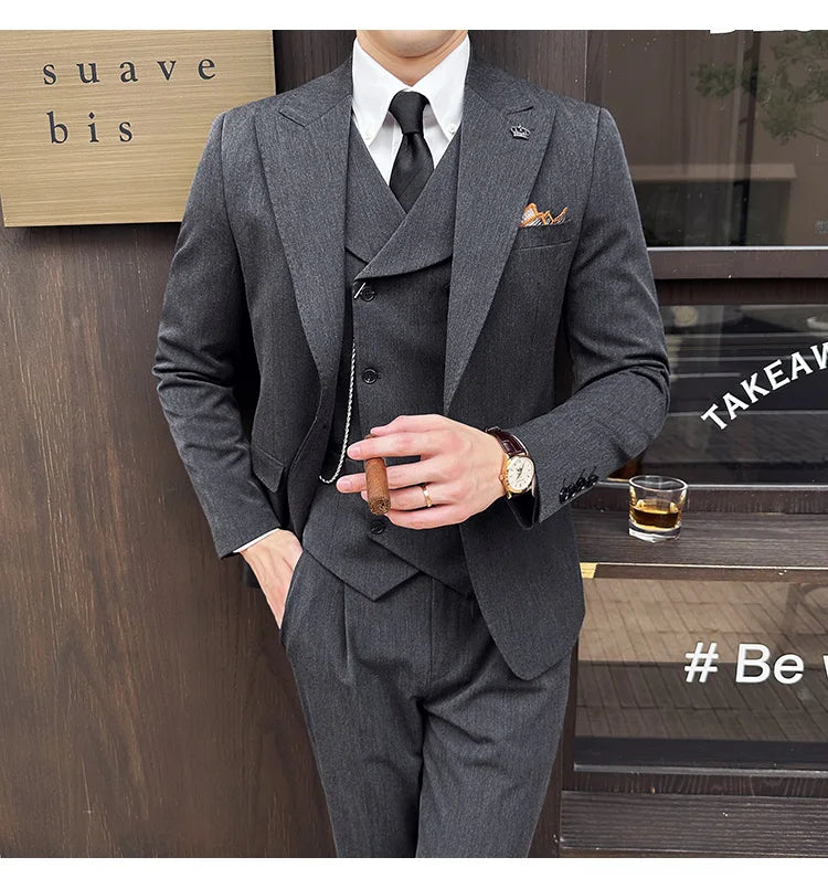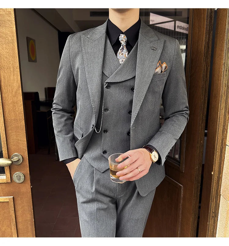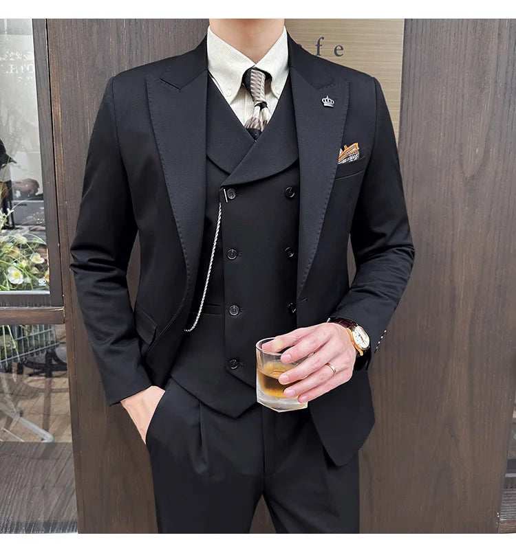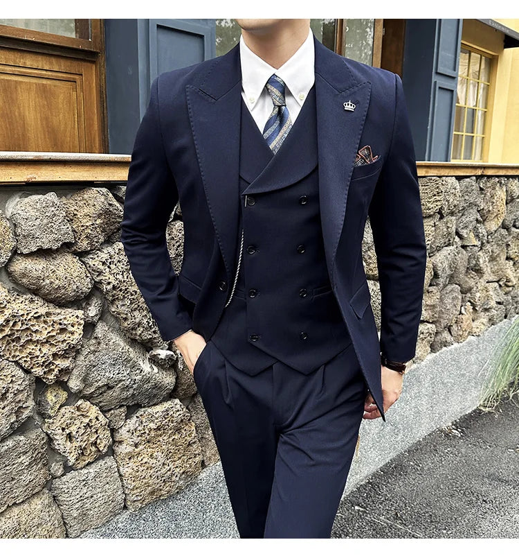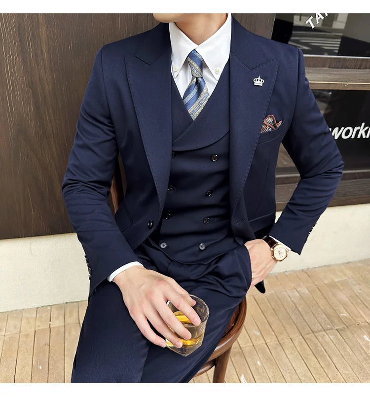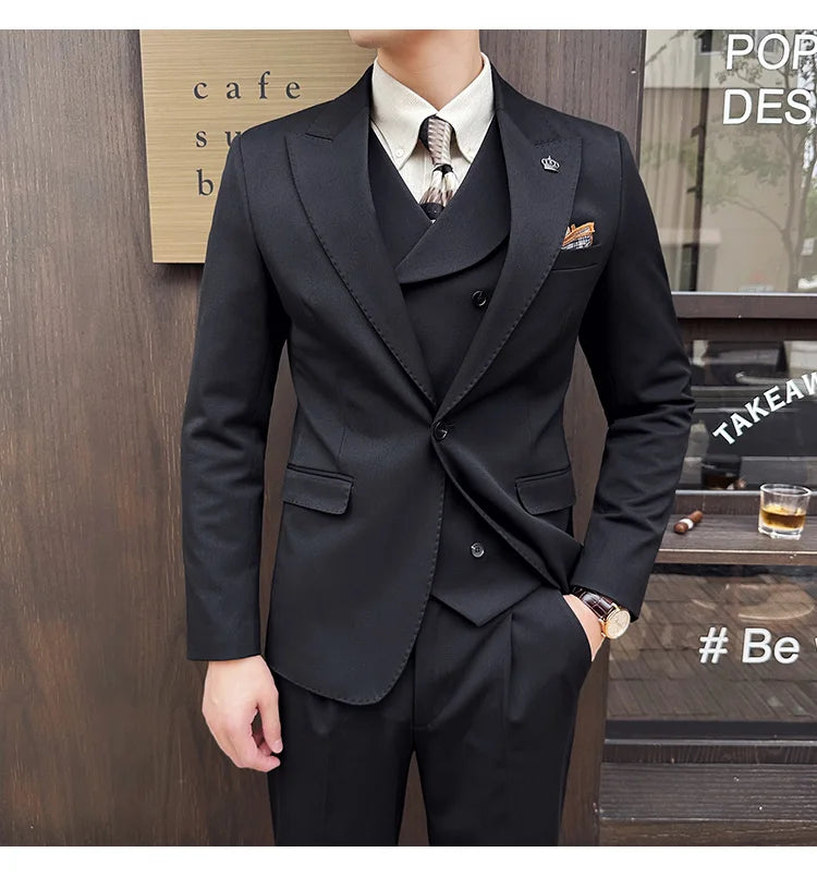 (Jackets+Pants+Vest) High Quality Men Slim Fit Party Tuxedos 3 Pieces Fashion Double Breasted Vest Design Wedding Social Suit