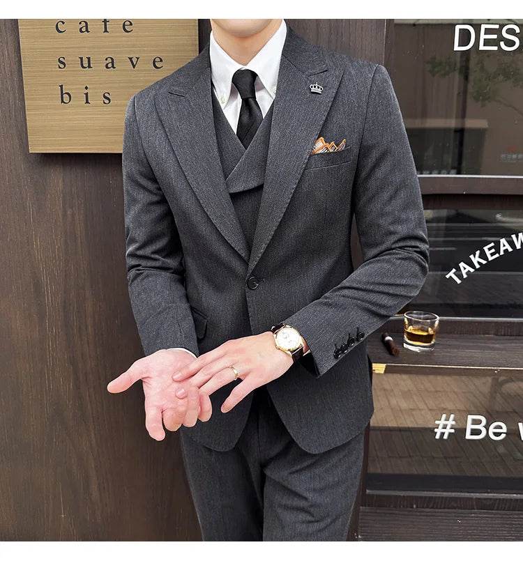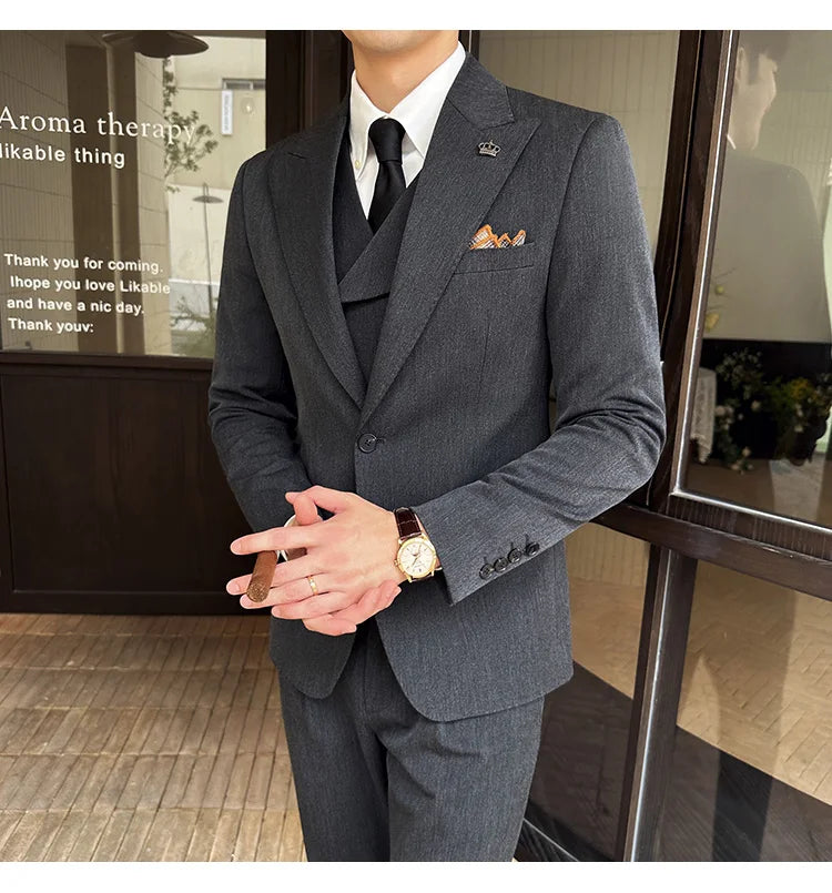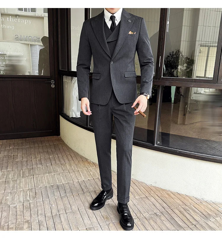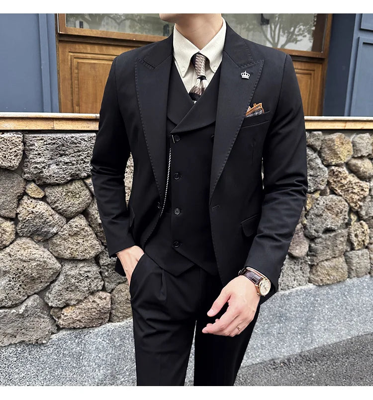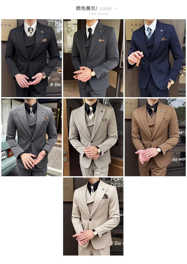 (Jackets+Pants+Vest) High Quality Men Slim Fit Party Tuxedos 3 Pieces Fashion Double Breasted Vest Design Wedding Social Suit