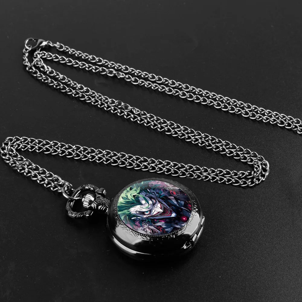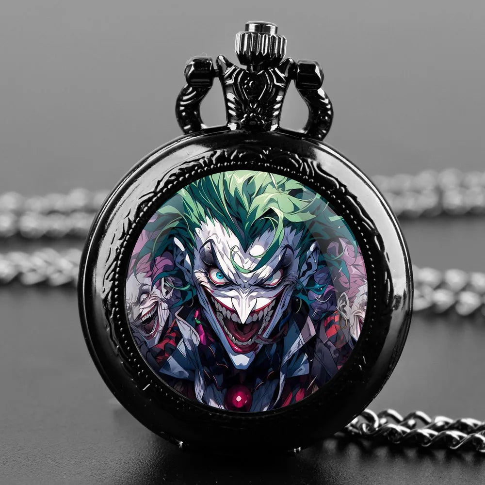 Joker Themed Glass Dome Quartz Pocket Watch Classic Arabic Numeral Dial with Durable Chain for Men Creative Gifts