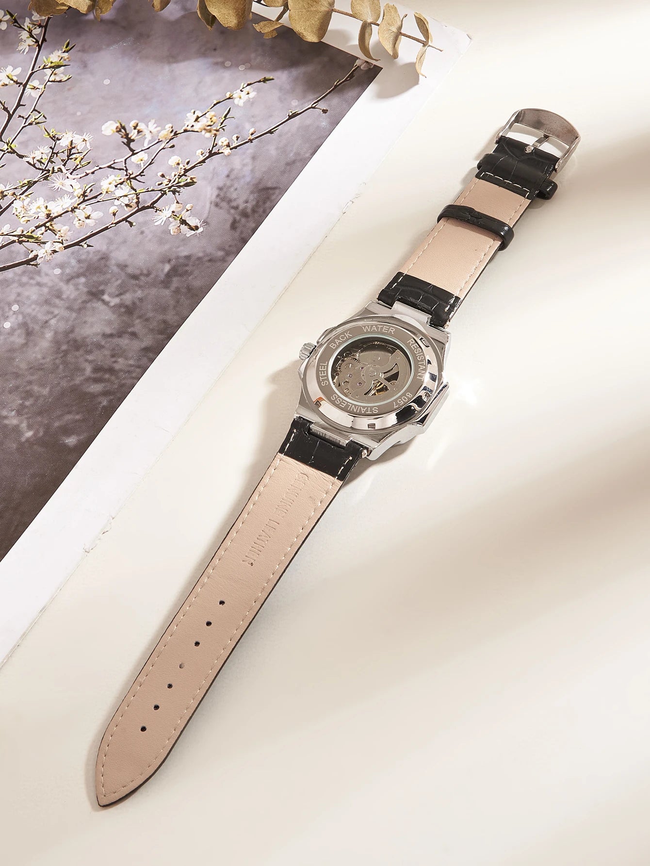 LONGLUX automatic man watch sport style wholesale mechanical wristwatches fashion hollow leather man watch men gift