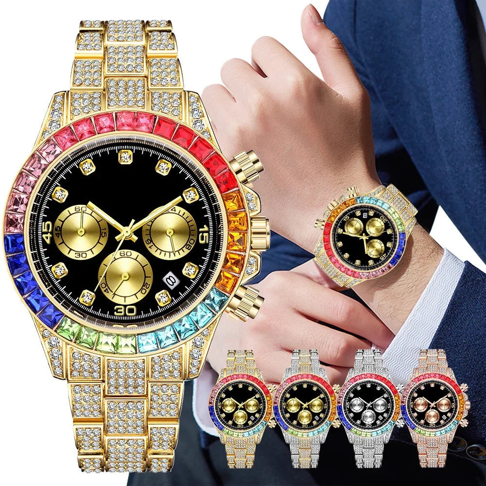 Luxury Men Colorful Watches Gold Silver Big Dial Man Wristwatch Sport Business Male Clock Relogio Masculino