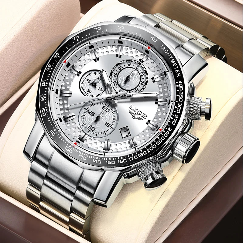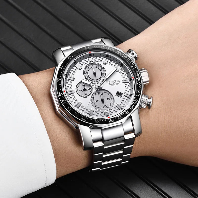 Man Watch LIGE Luxury Stainless Steel Mens Watch Male Military Sport Waterproof Big Watches Men Quartz Clock Relogios Masculino
