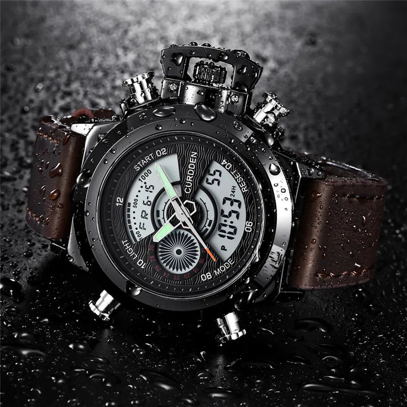 Men Original CURDDEN Brand Dual Time Watches Fashion Leather Band Chronograph Military Multi-function Sports Watch Reloj Hombre