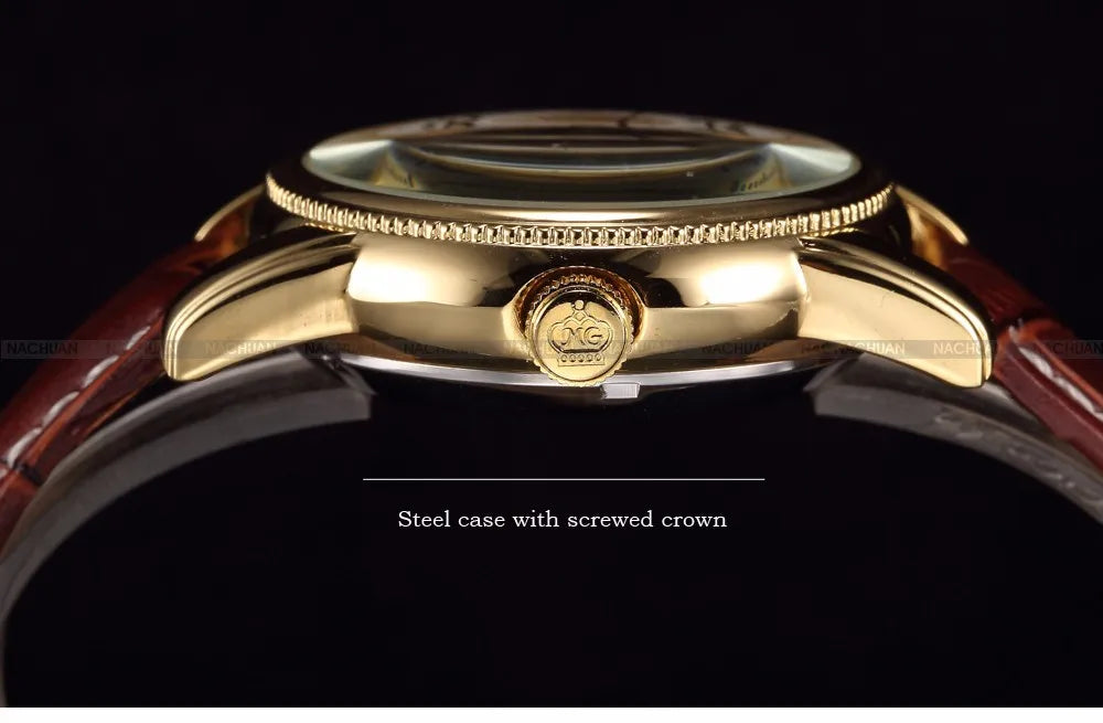Men Wrist Watches Luxury Golden Skeleton Mechanical Steampunk Male Clock Automatic Wristwatch Leather Strap Herren Horloges