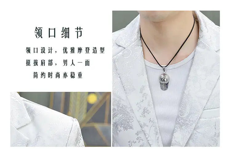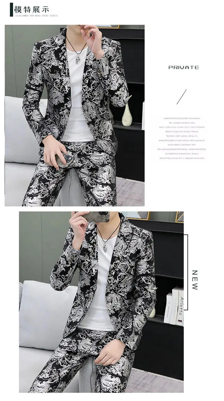 Men's Suit Set Shiny Gold and Silver 2-piece Set Korean Fashion Host Wedding Set Suit Jacket+pants Men's Hot Stamping Clothing