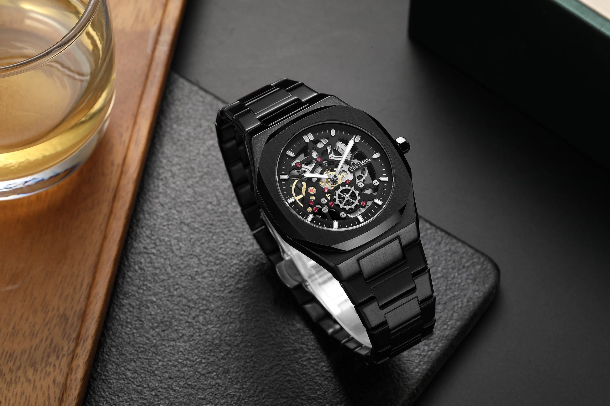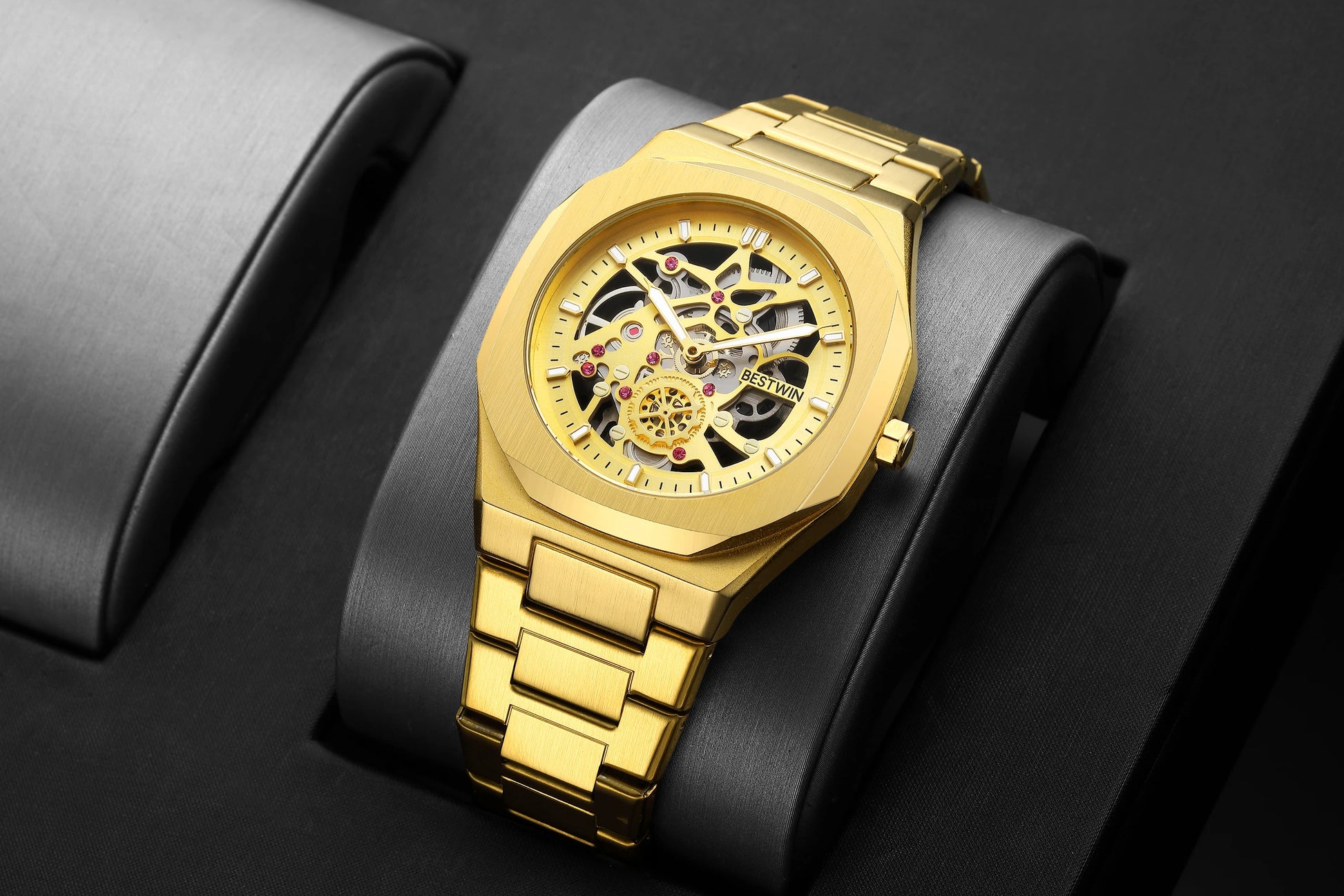 New Octagonal Design Quartz Wristwatches Men Golden Stainless Steel Dress Watch Date/Week Functions Luxury Diver's Clock Man
