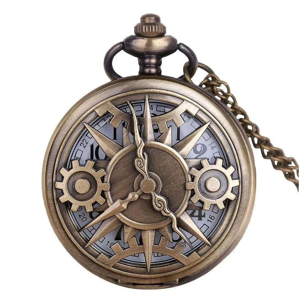 New steampunk vintage gear hollow quartz watch pocket necklace gift chain pocket watch men boys