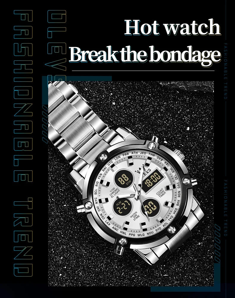 OLEVS 2024 New Mens Watches Top Brand Luxury Sport Digital Quartz Wristwatch For Men All Steel Military Waterproof Clock+Box