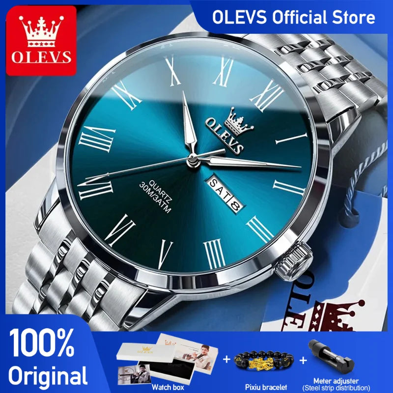 OLEVS 3633 Men's Watch Business Simply Original Quartz Watch for Man Waterproof Luminous Stainless Steel Dual Calendar Display
