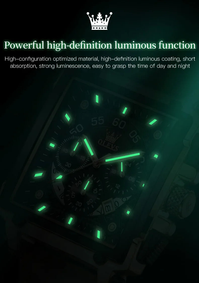OLEVS Top Brand Male Watches Square Quartz Watch Watch For Men Waterproof Leather Strap Sport Clock Male Relogio Masculino