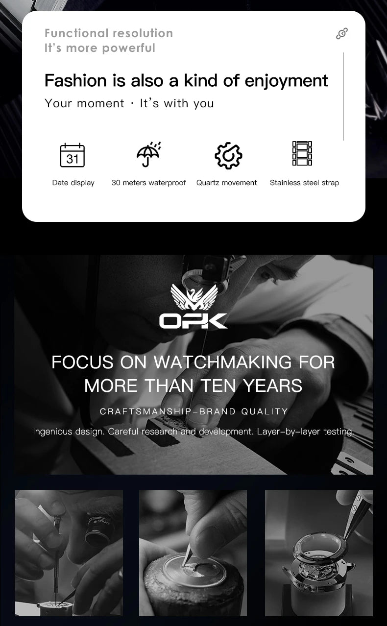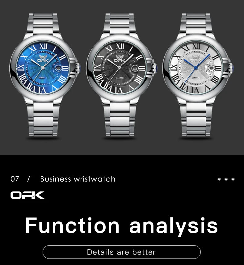 OPK 6039 Mens Watch Original Quartz Wristwatch Waterproof Luminous Watches For Man Automatic Date Watch With Box Reloj Hombre