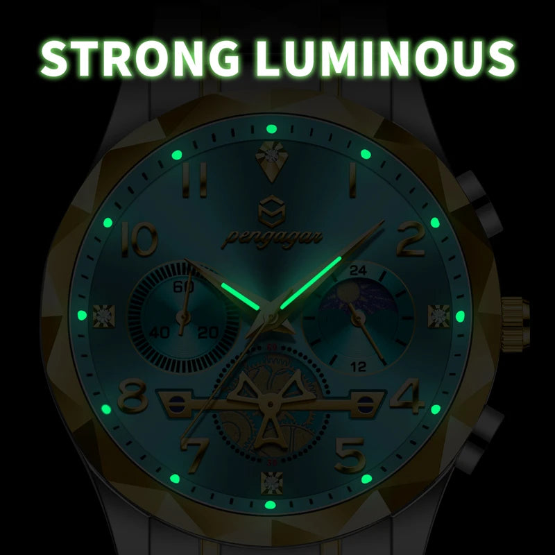 PENGAGAR Luxury Man Wristwatch Chronograph Waterproof Luminous Men Watch Stainless Steel High Quality Sport Men's Quartz Watches