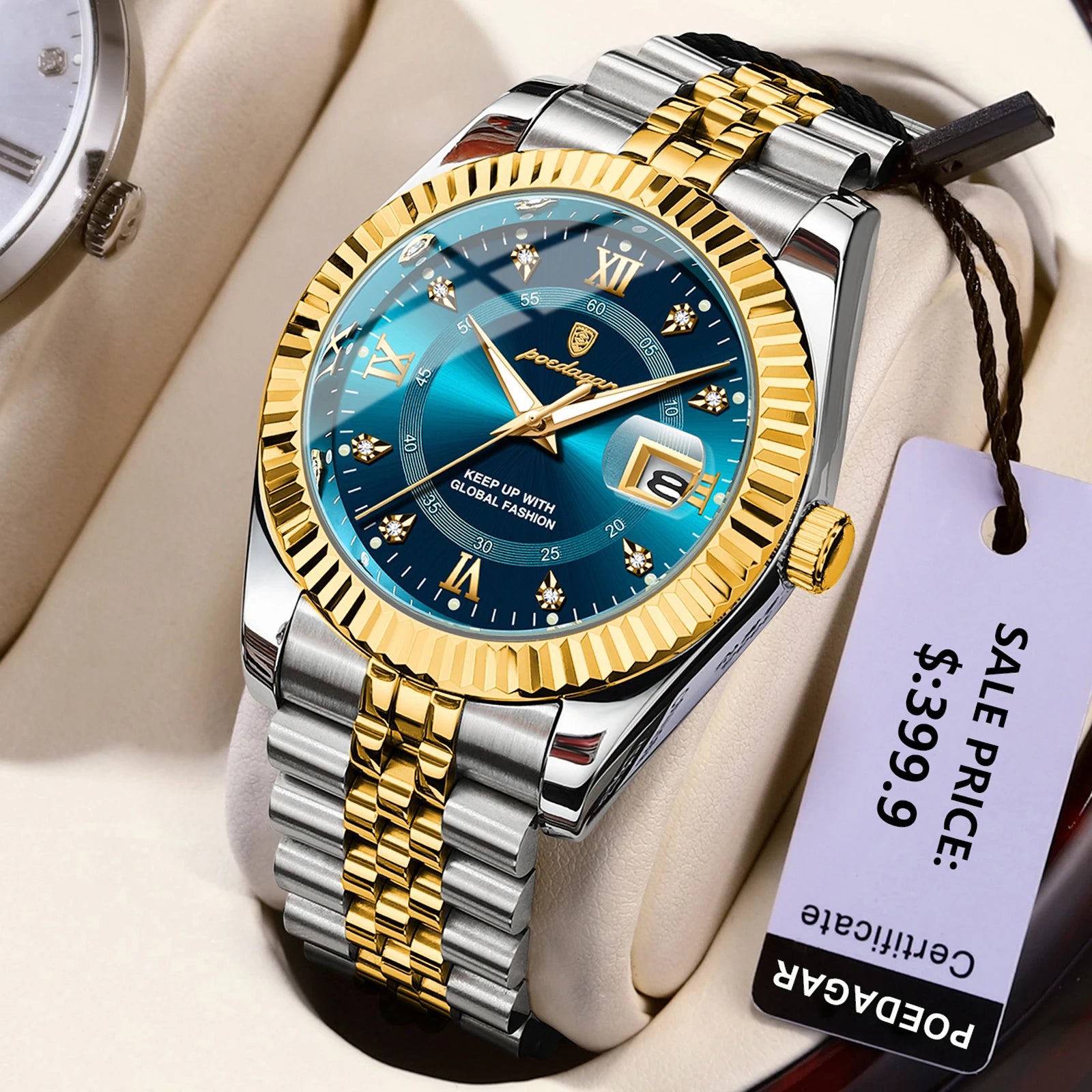 POEDAGAR Classic Men's Watches Luxury Fashion Threaded Bezel Watch for Man Luminous Date Waterproof Original Quartz Wristwatch