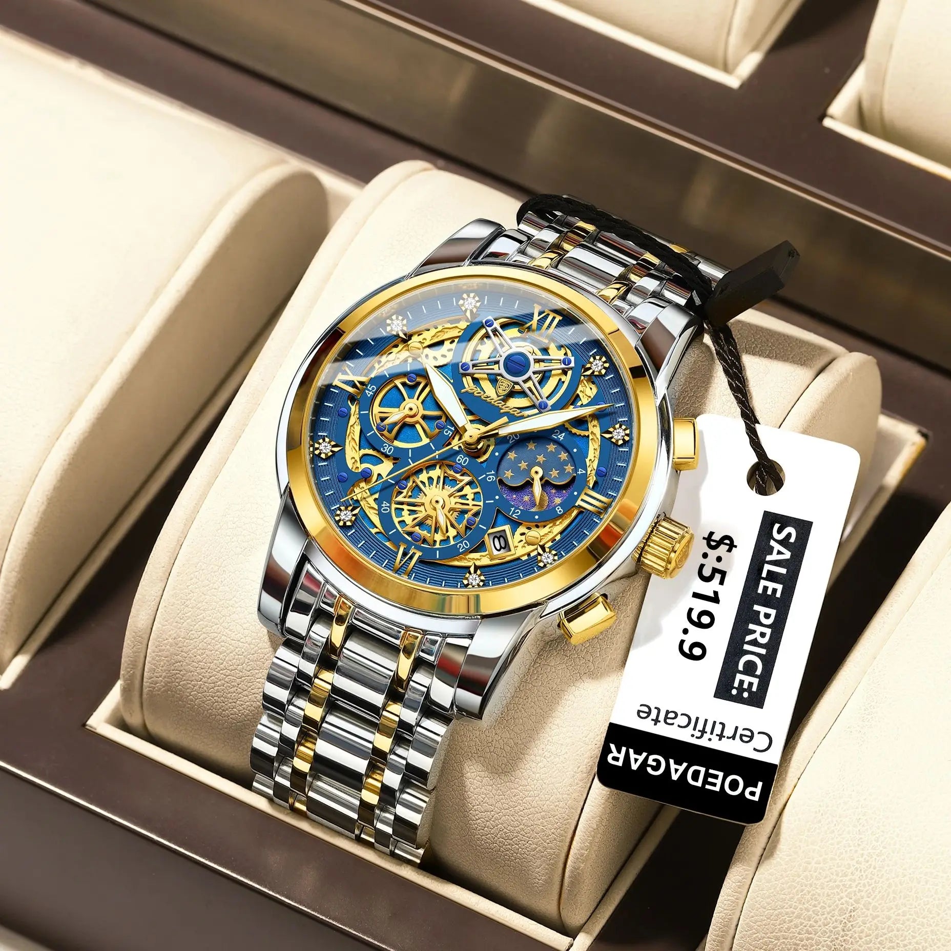 POEDAGAR Luxury High Quality Man Watch Waterproof Luminous Chronograph Date Men Watch Stainless Steel Quartz Men's Watches Reloj