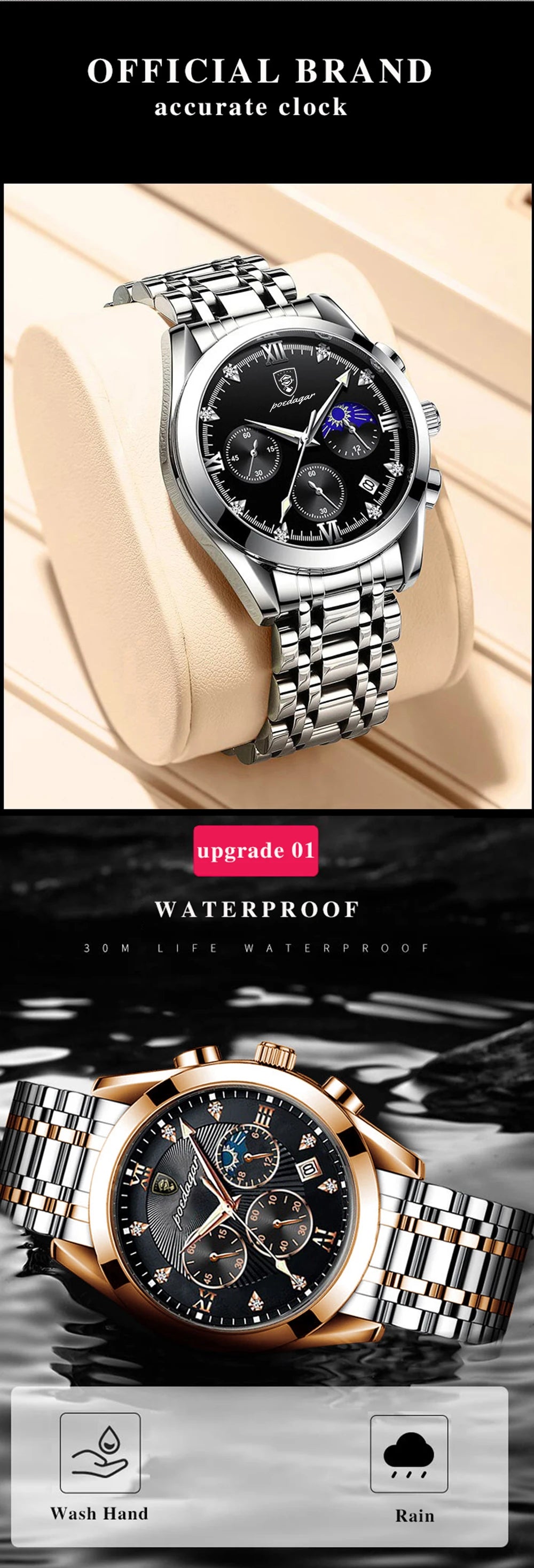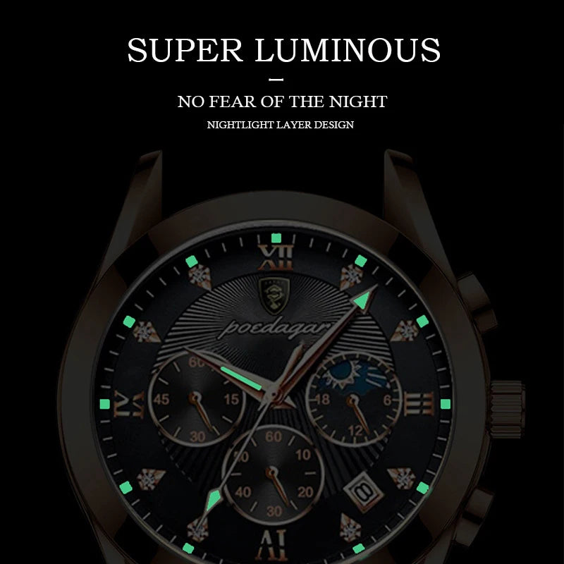 POEDAGAR Men Watches Stainless Steel Top Luxury Fashion Business Wristwatch Waterproof Luminous Quartz Watches Relogio Masculino