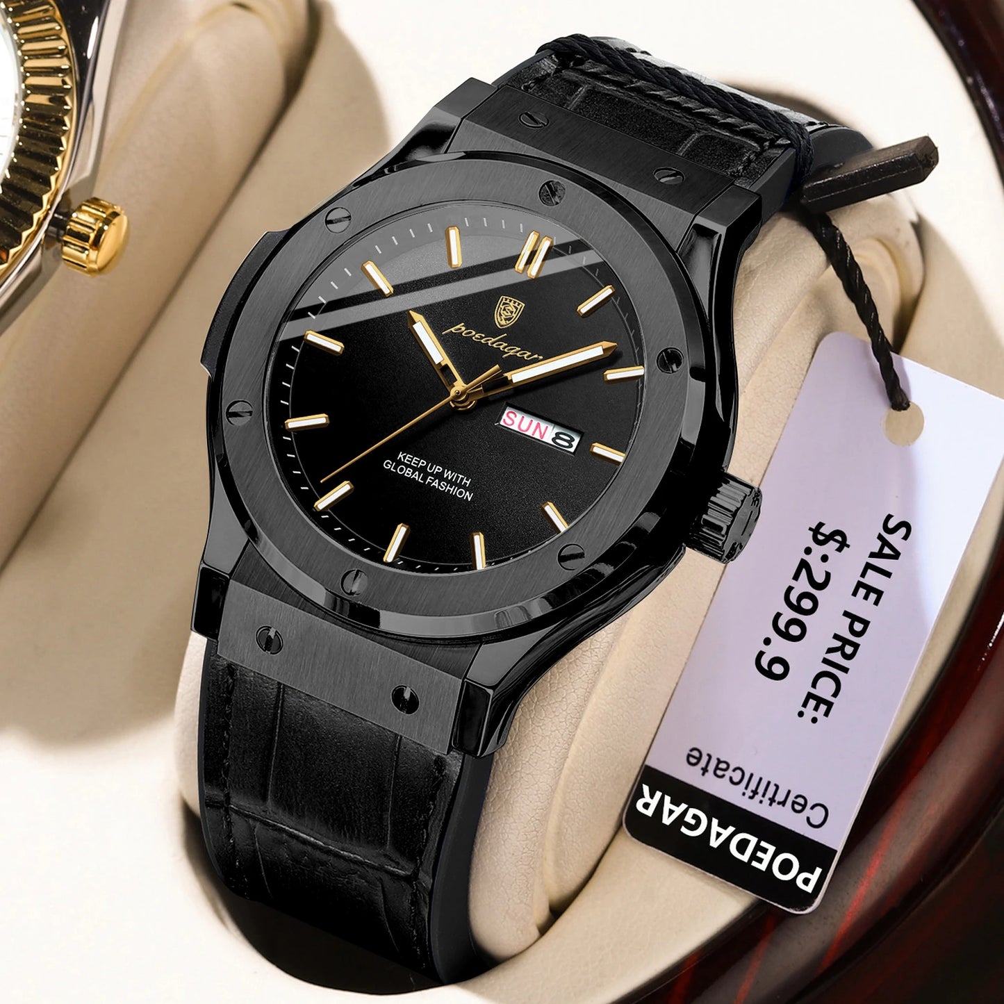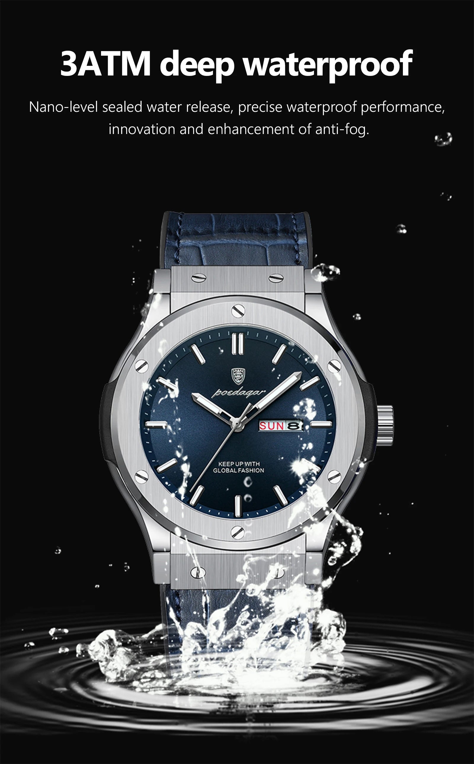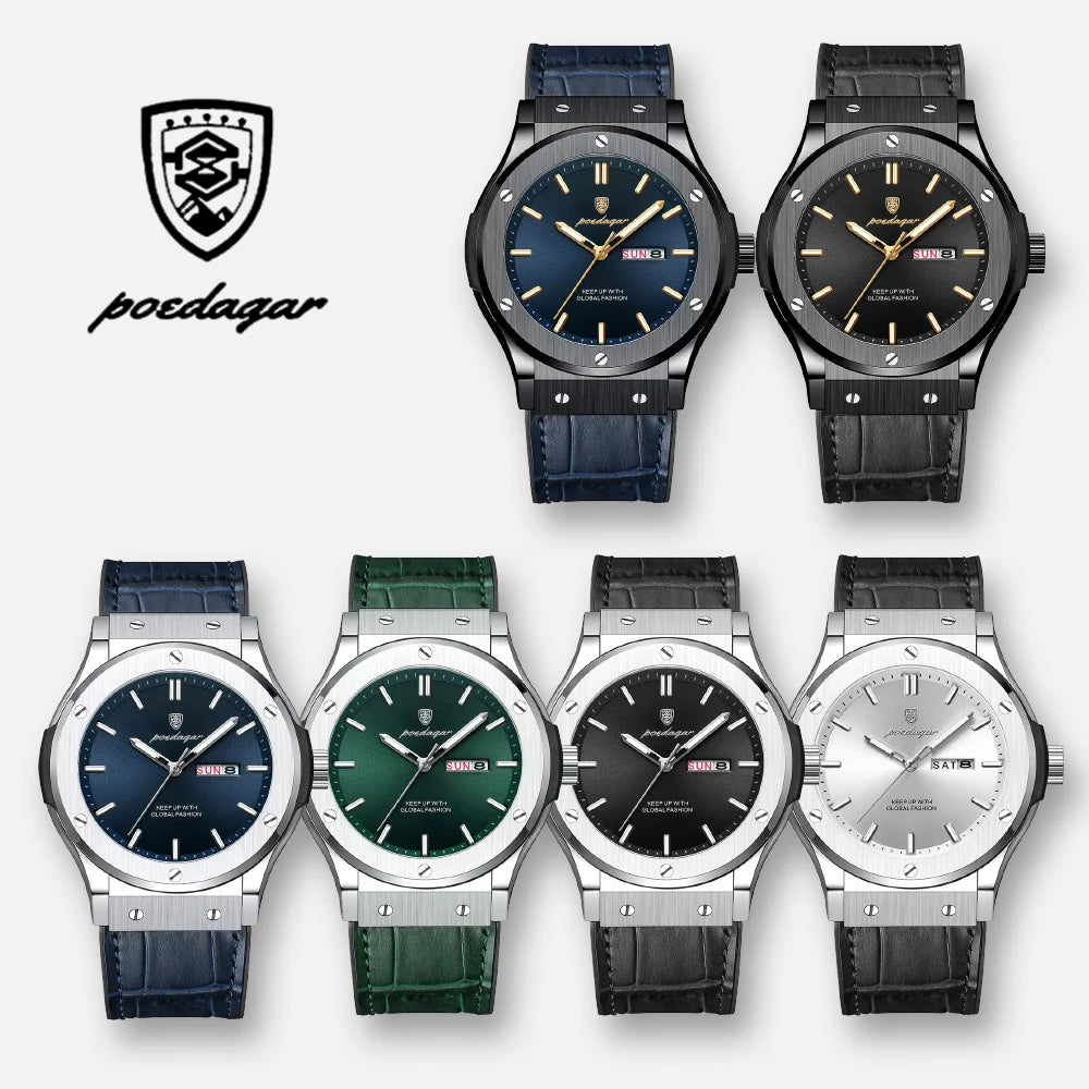 POEDAGAR Men's Watches Trend Fashion Original Quartz Watch for Man Waterproof Leather Strap Luminous Date Week Wristwatch Reloj