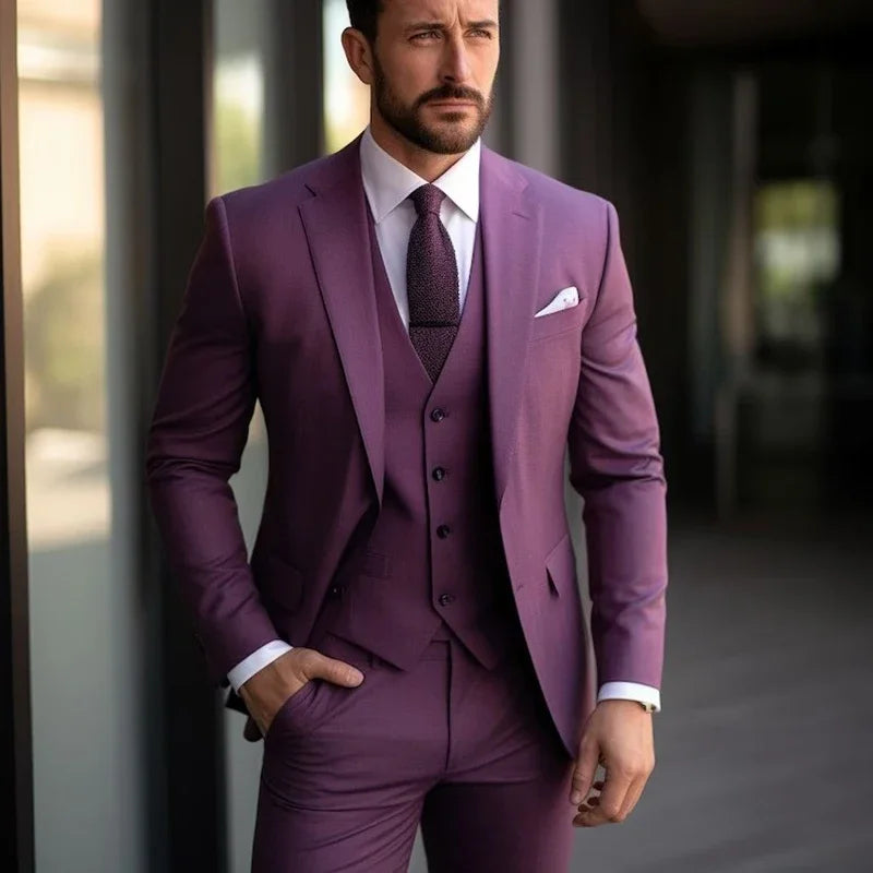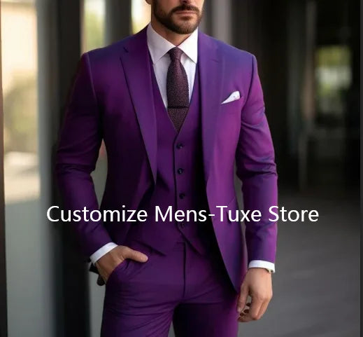 Purple Men's Suits Elegant Blazer Terno High Quality 3 Piece Jacket Pants Vest Set Business Outfits Costume Homme Slim Fit 2024