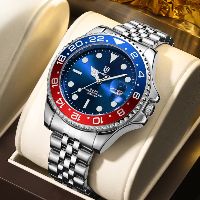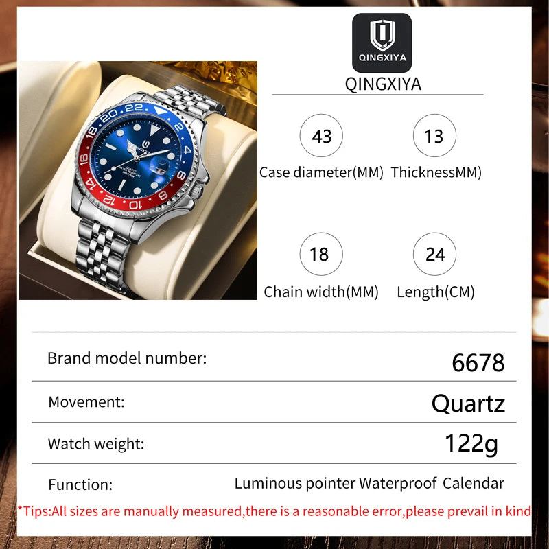 QINGXIYA Brand New Luxury Stainless Steel Quartz Watch for Men Waterproof Luminous Date Fashion Men Watch Casual Mens Watches