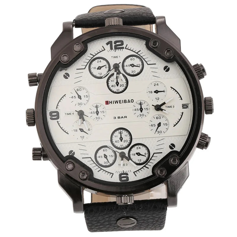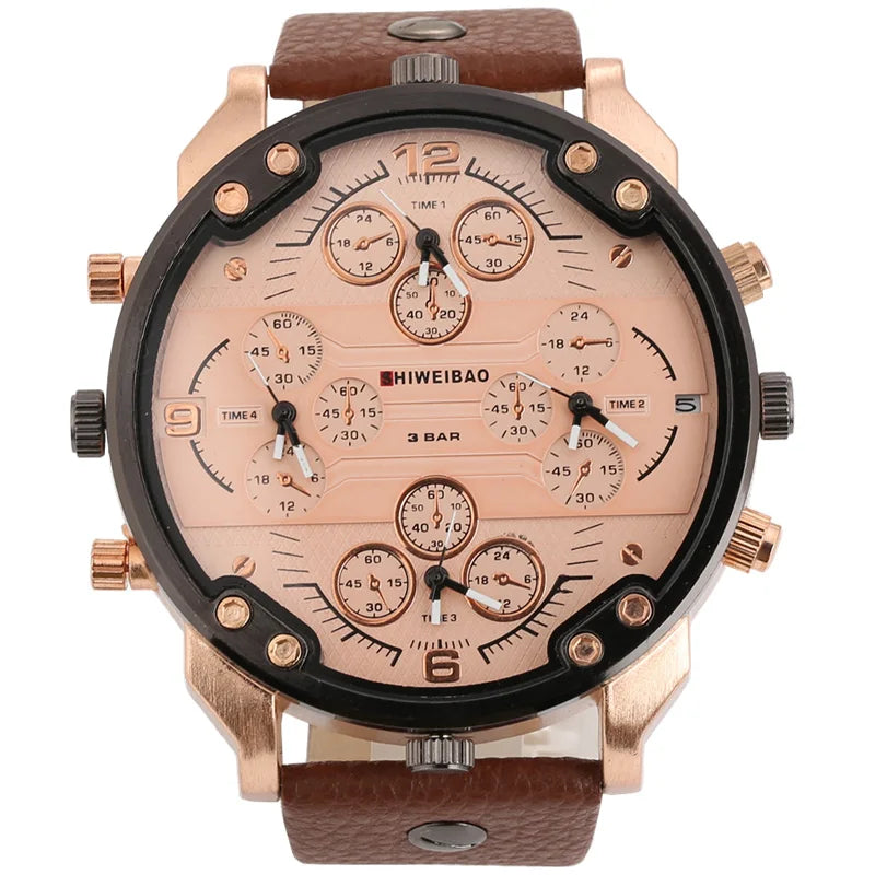 Shiweibao Cool Mens Watches Top Brand Luxury Quartz Watch For Men Four Time Zones Military Wristwatches Leather Relojes Hombre
