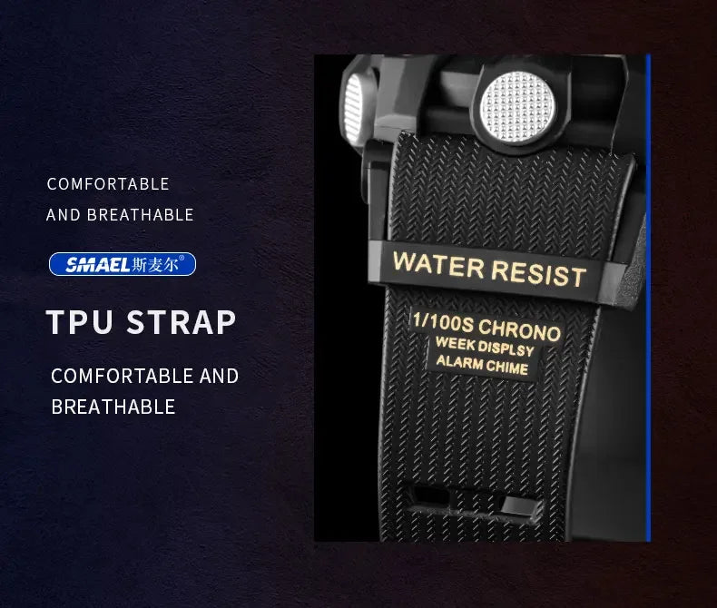 SMAEL 8040 50M Waterproof Wristwatch Stopwatch Alarm LED Light Digital Watches Men's Sports Watch Military Watches Men Watch