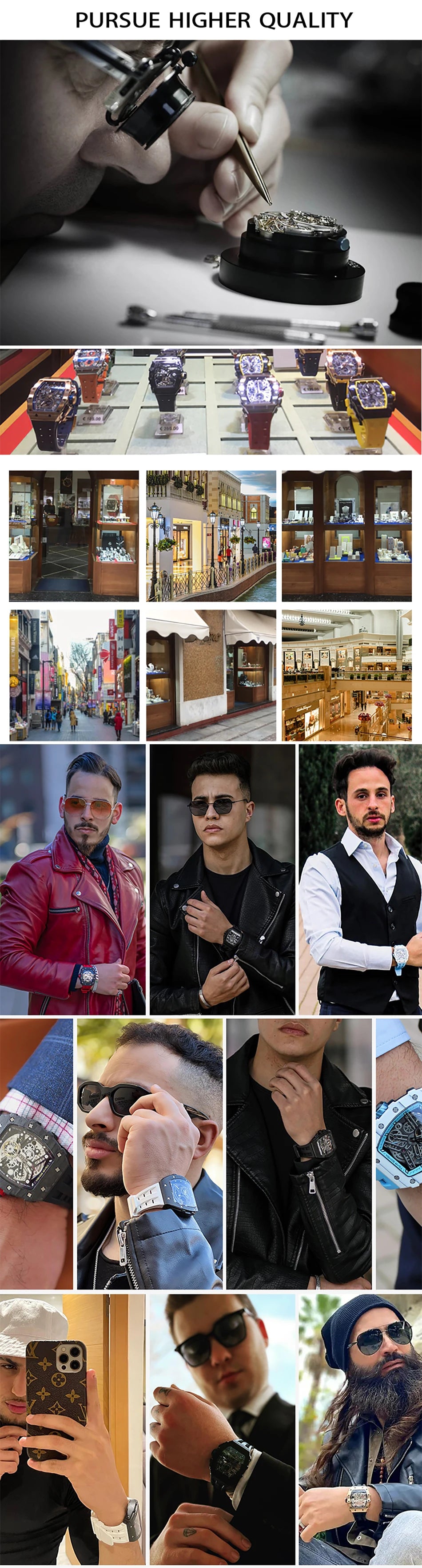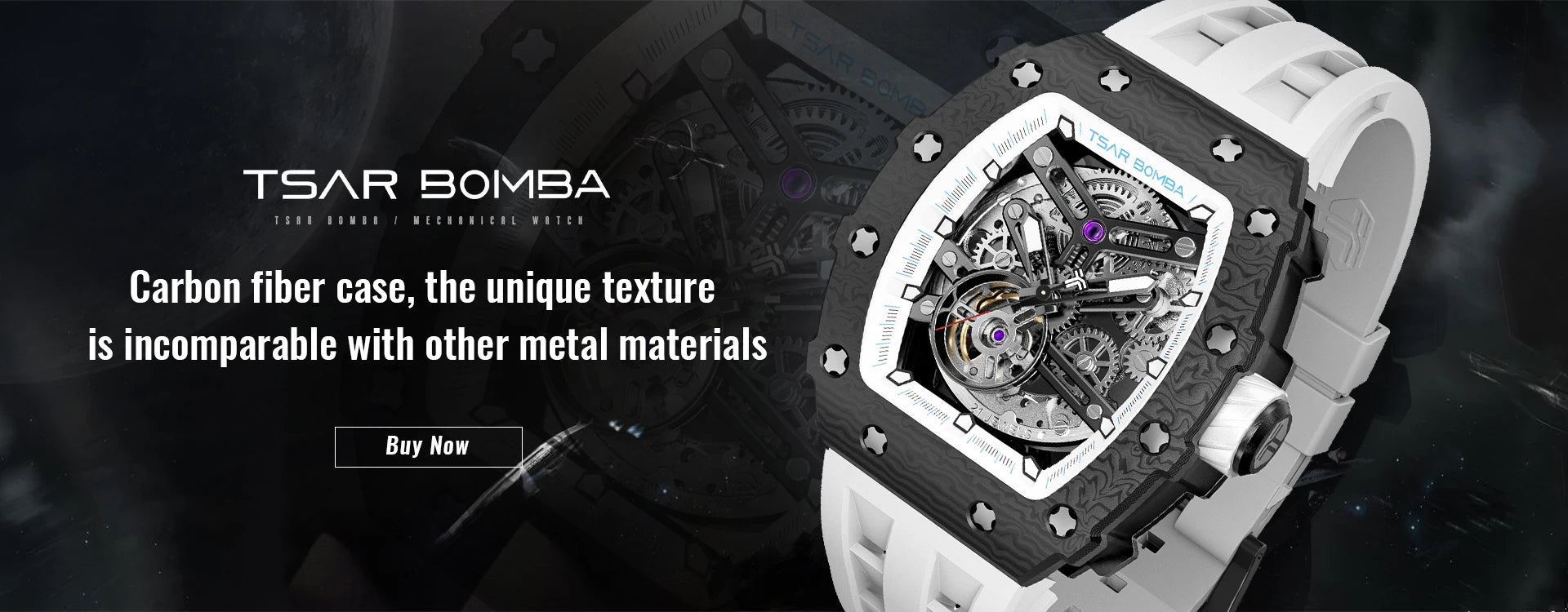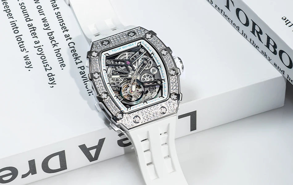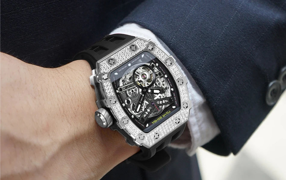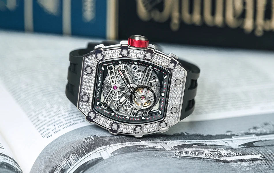 TSAR BOMBA Rose Gold Mens Automatic Watch Mechanical Wristwatch Sapphire Clock Fashion Skeleton Watch New Year Gift for Men
