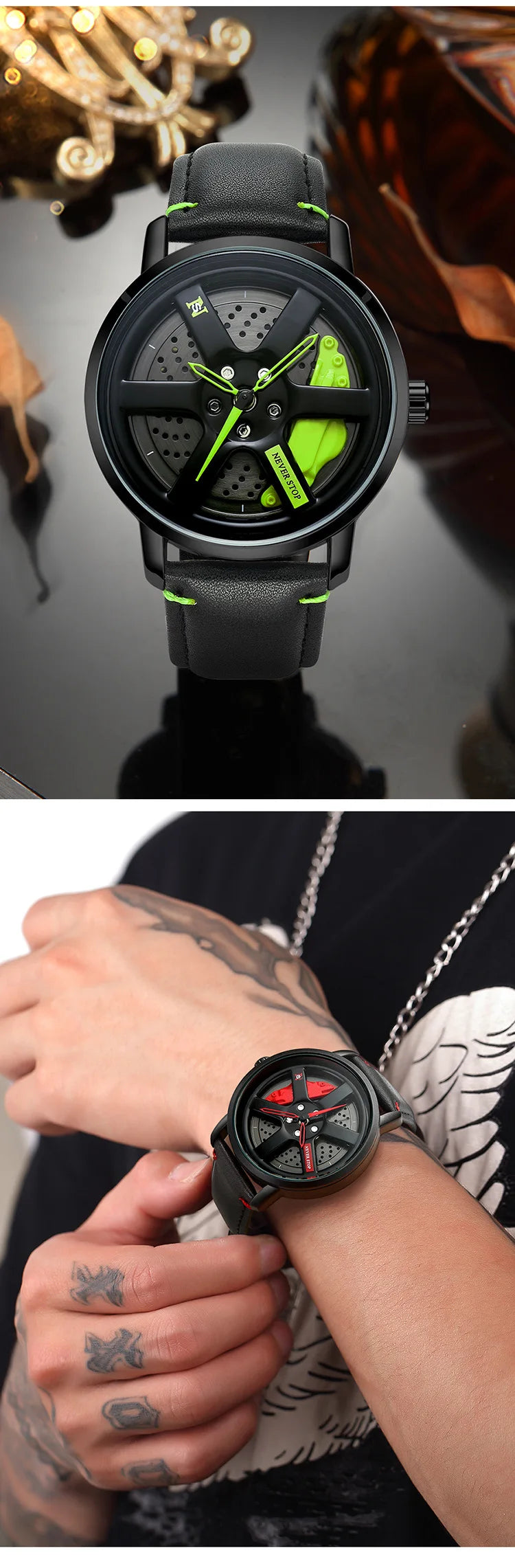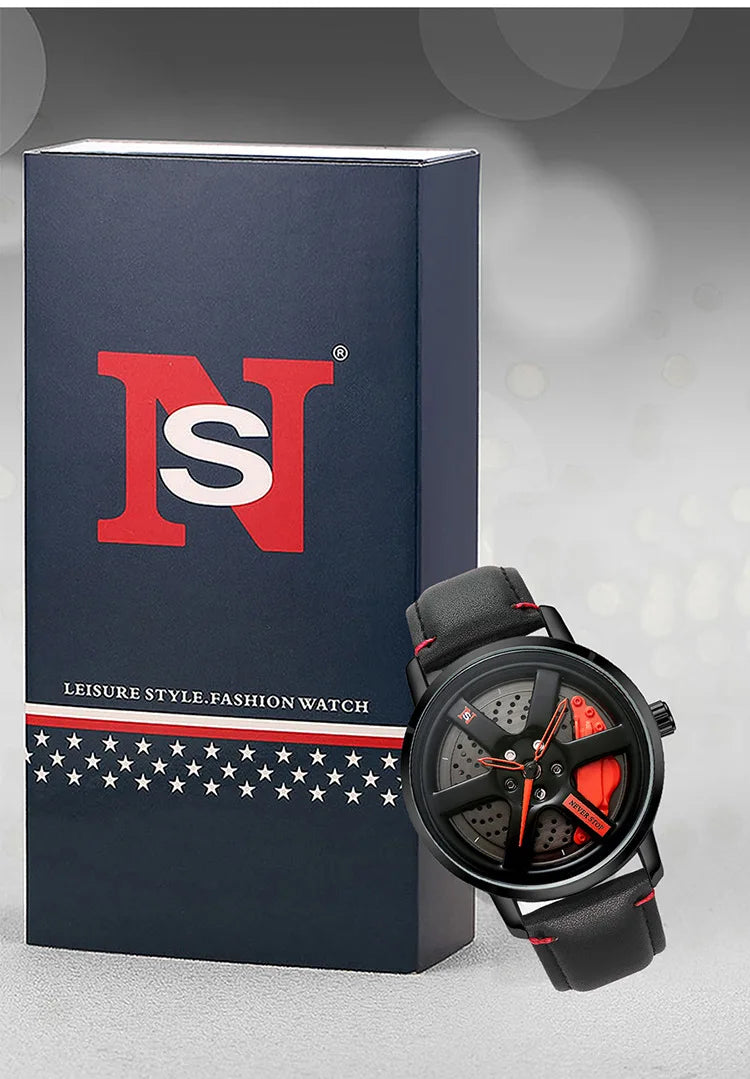 UTHAI L98 Brand Watch Men's Fashion Sports Personality Car Hub 360° Rotation Waterproof Leather Male's Quartz Clock Wristwatch