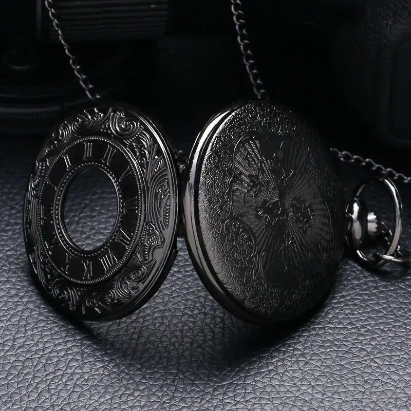 Vintage Charm Black Unisex Fashion Roman Number Quartz Steampunk Pocket Watch Women Man Necklace Pendant with Chain Gifts P427
