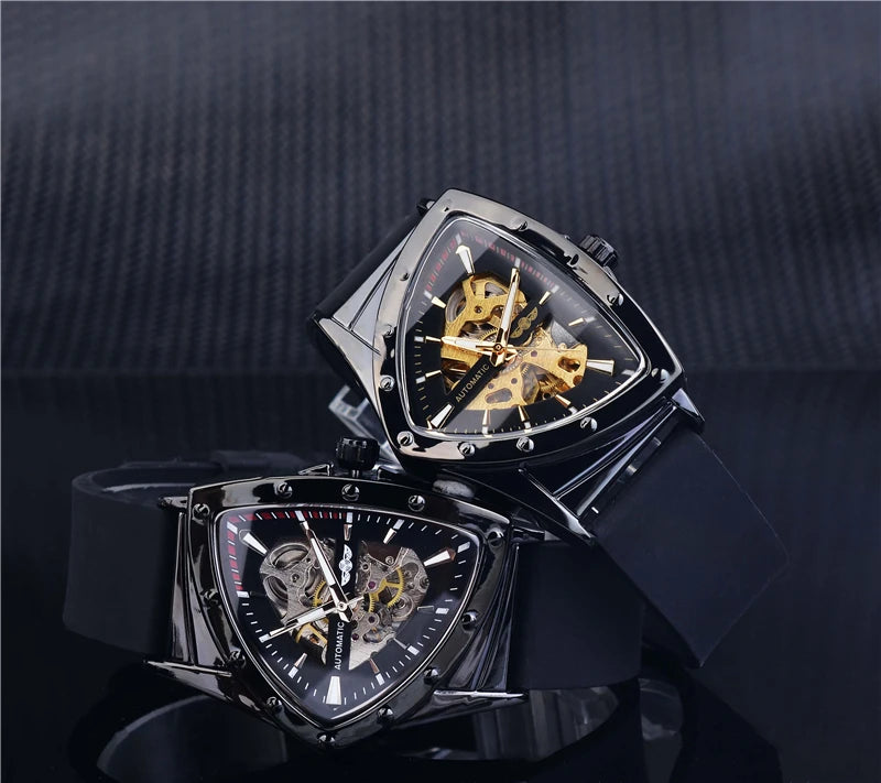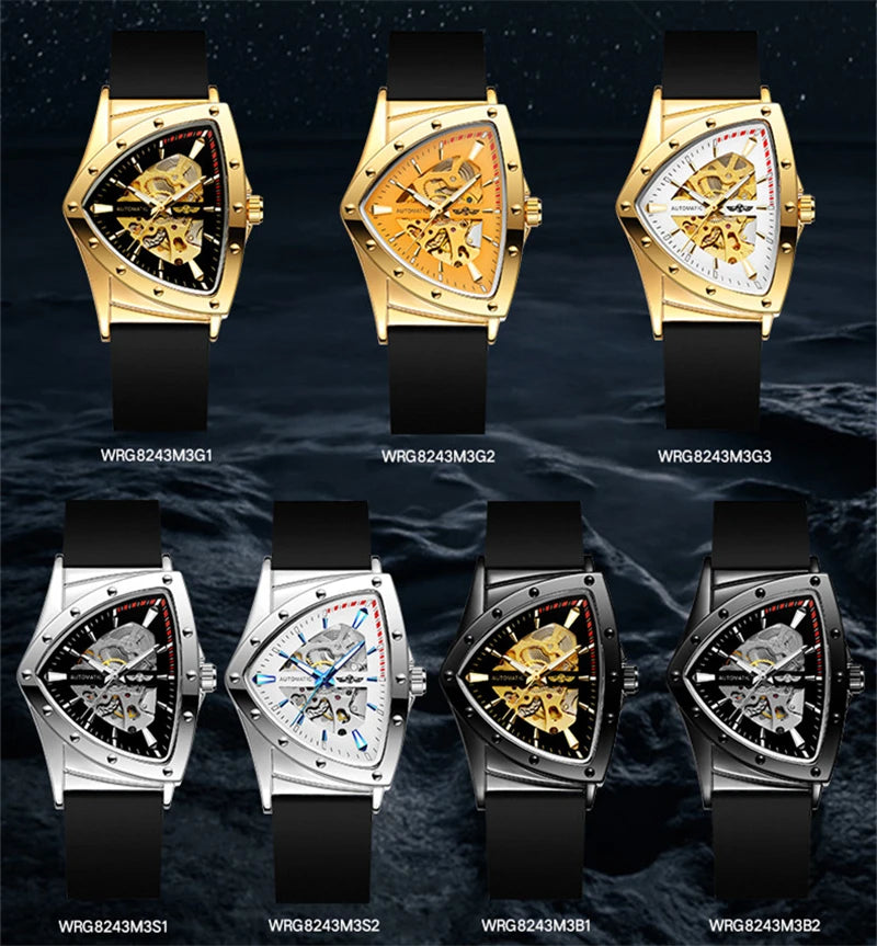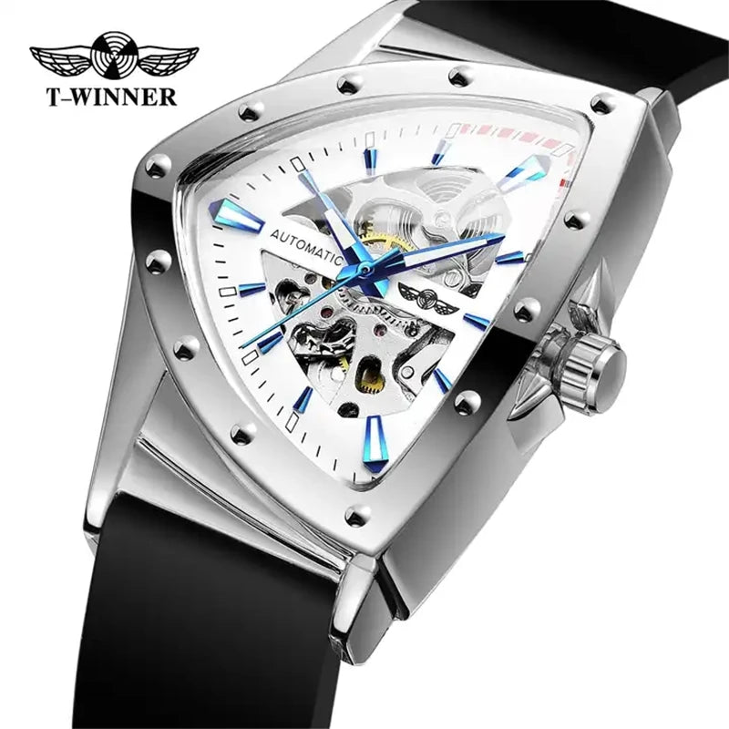 Winner 395R WINNER Minimalist Automatic Watch for Men Creative Triangle Dial Brand Luxury Business Mechanical Watches Silicone
