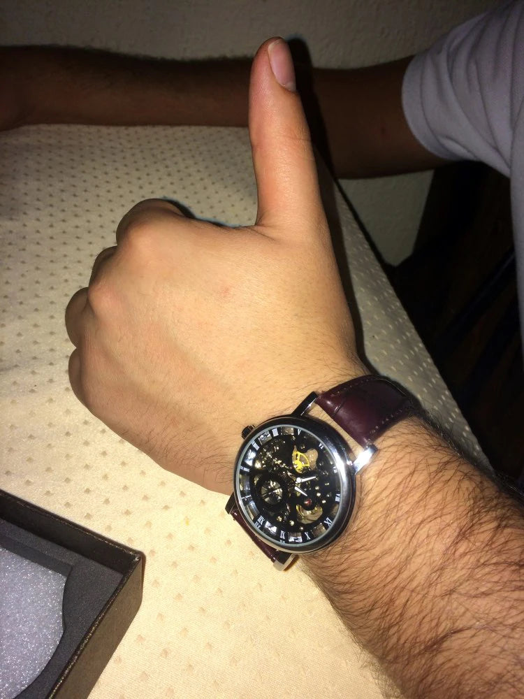 Winner Transparent Golden Case Luxury Casual Design Brown Leather Strap Mens Watches Top Brand Luxury Mechanical Skeleton Watch
