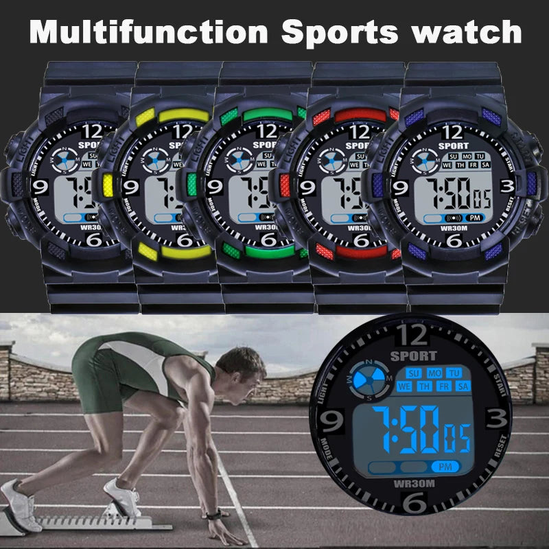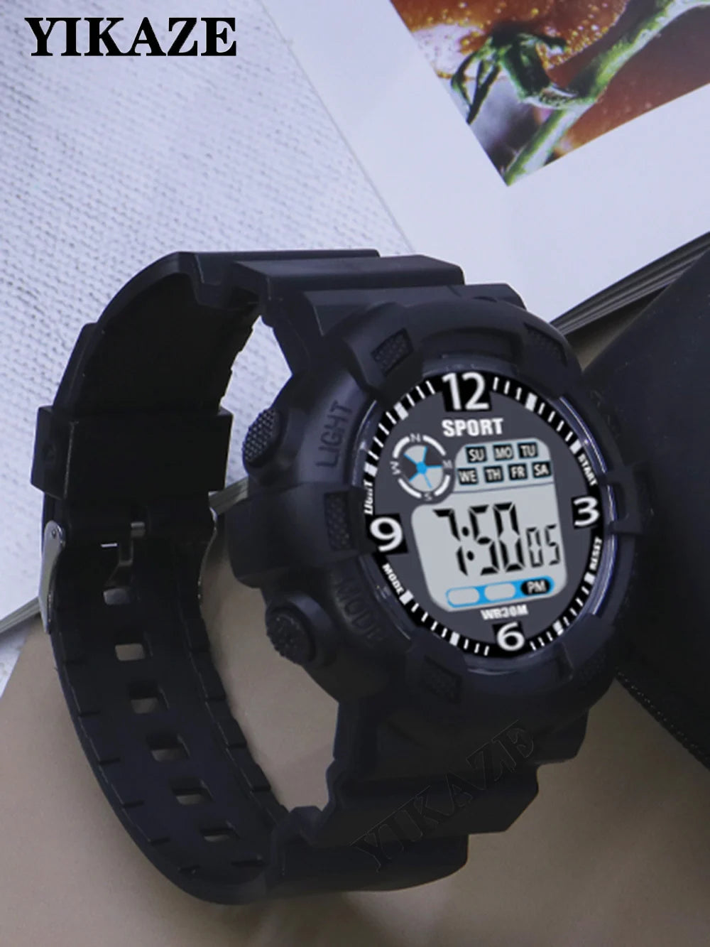 YIKAZE Men's Digital Electronic Watch Sports Glow 55mm Large Dial Student Outdoor Adventure Trend Multifunctional Watches Clock